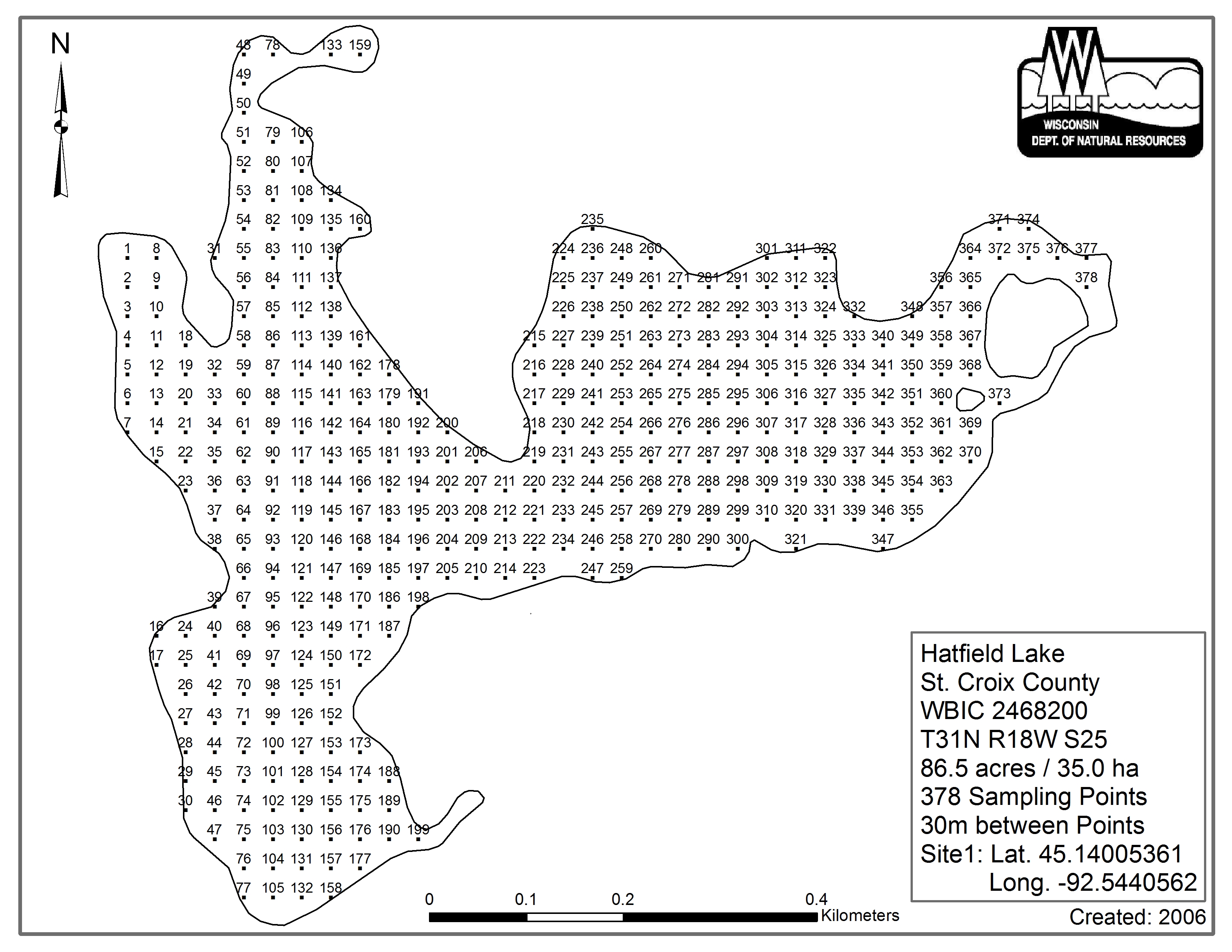 Hatfield Lake, Saint Croix County - Aquatic Plant Sampling Map (30 mpts)