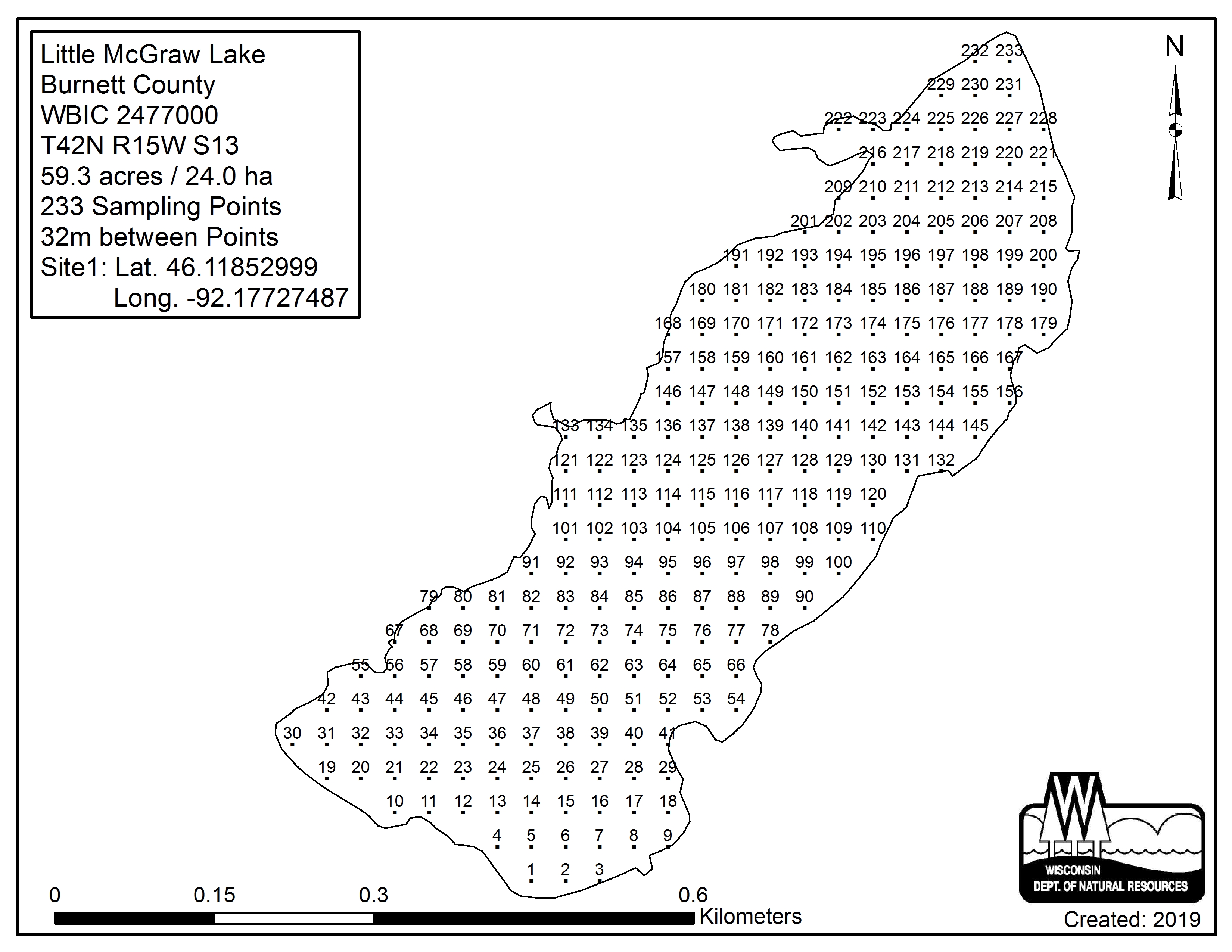 Little McGraw Lake, Burnett County - Aquatic Plant Sampling Map (32 mpts)