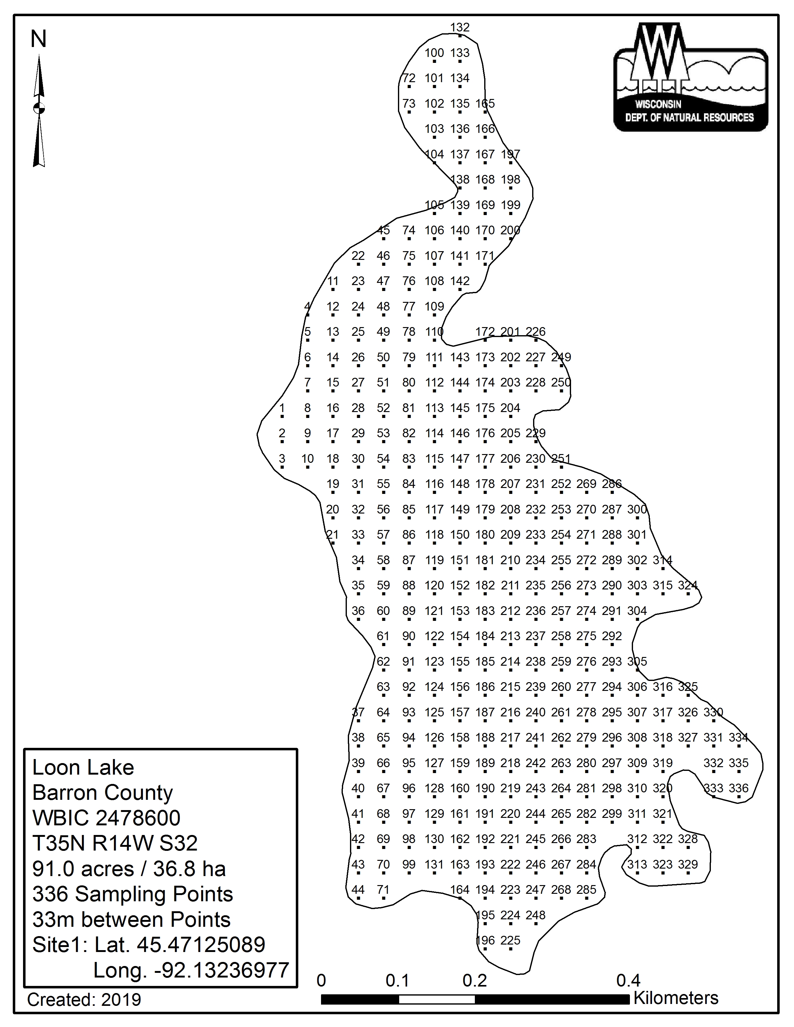 Loon Lake, Barron County - Aquatic Plant Sampling Map (33 mpts)