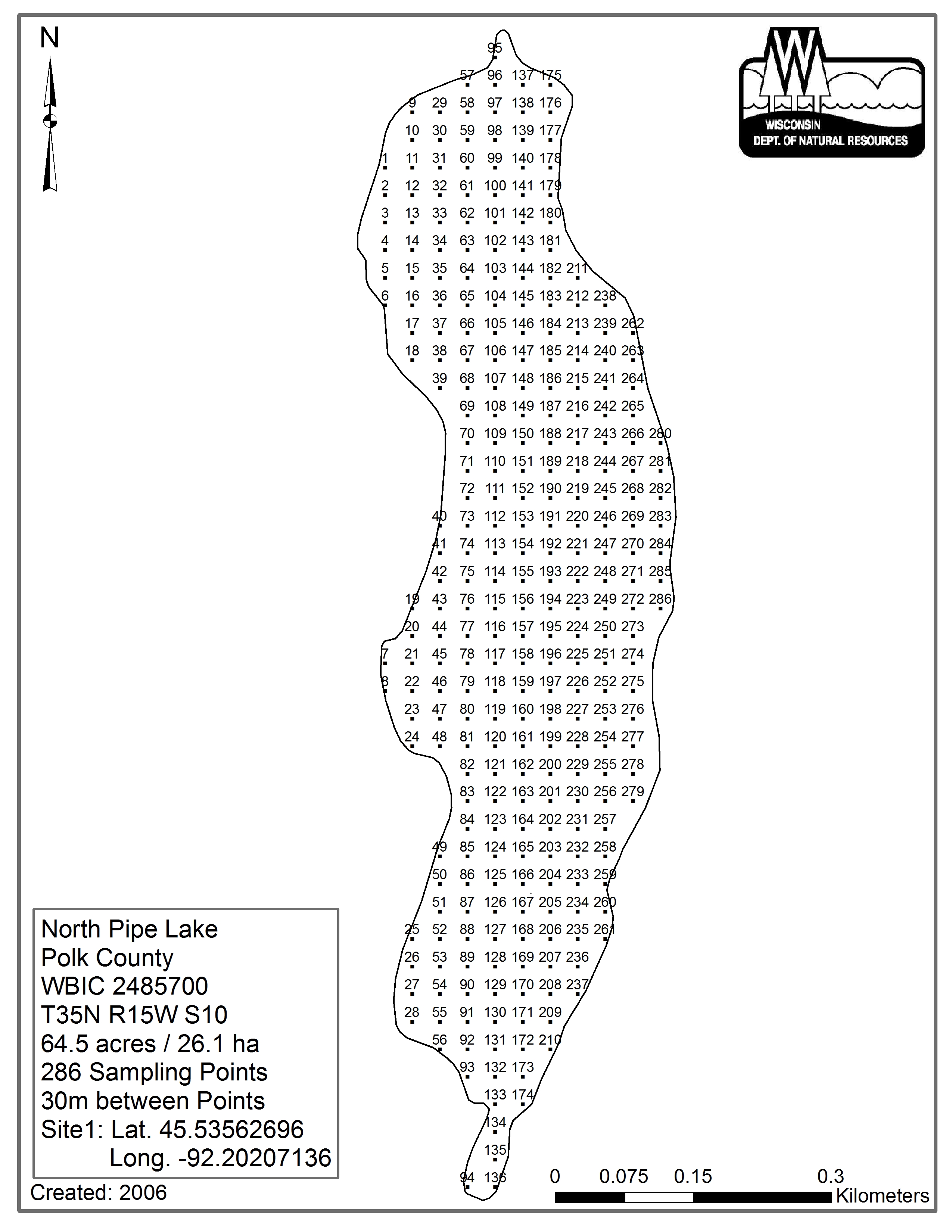 North Pipe Lake, Polk County - Aquatic Plant Sampling Map (30 mpts)