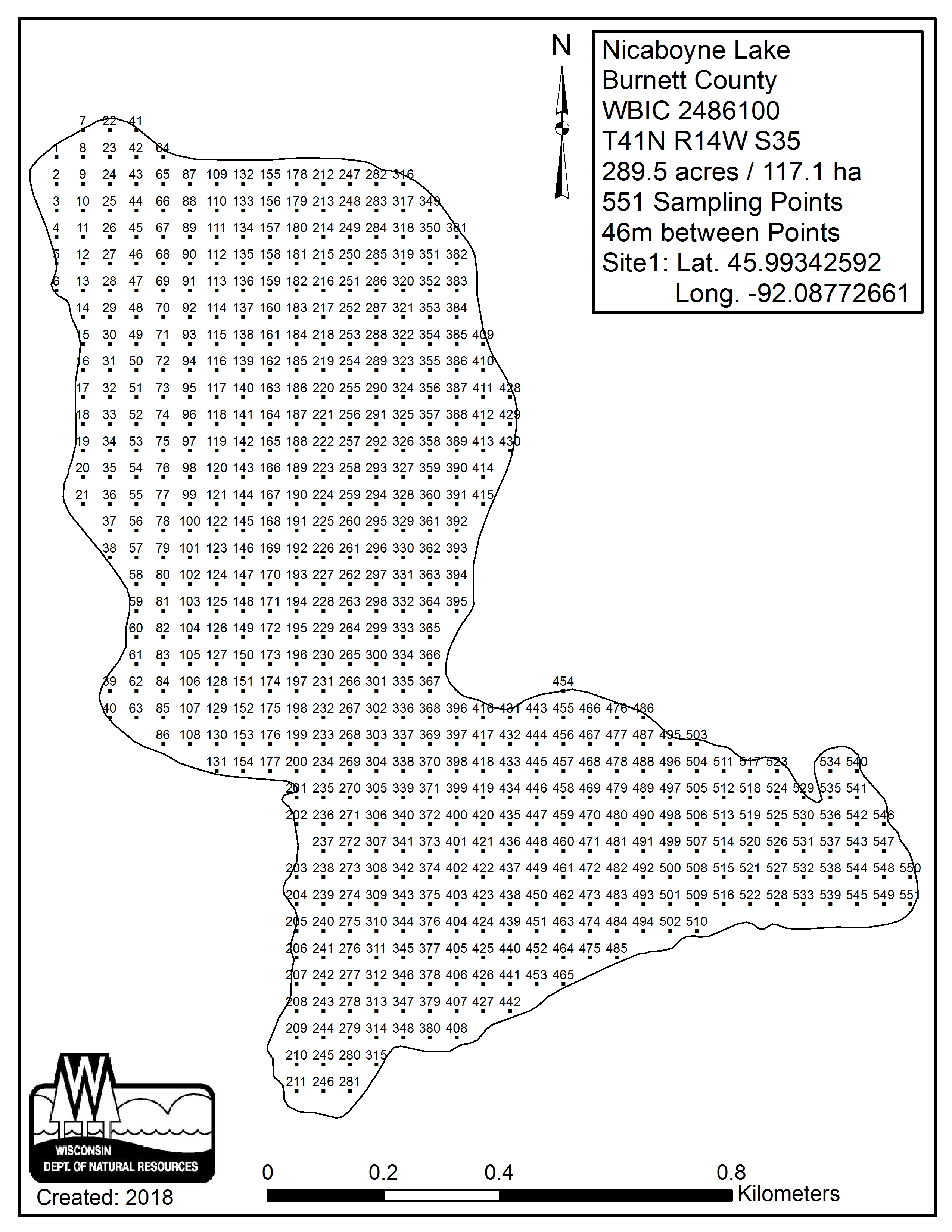 Nicaboyne Lake, Burnett County - Aquatic Plant Sampling Map (46 mpts)