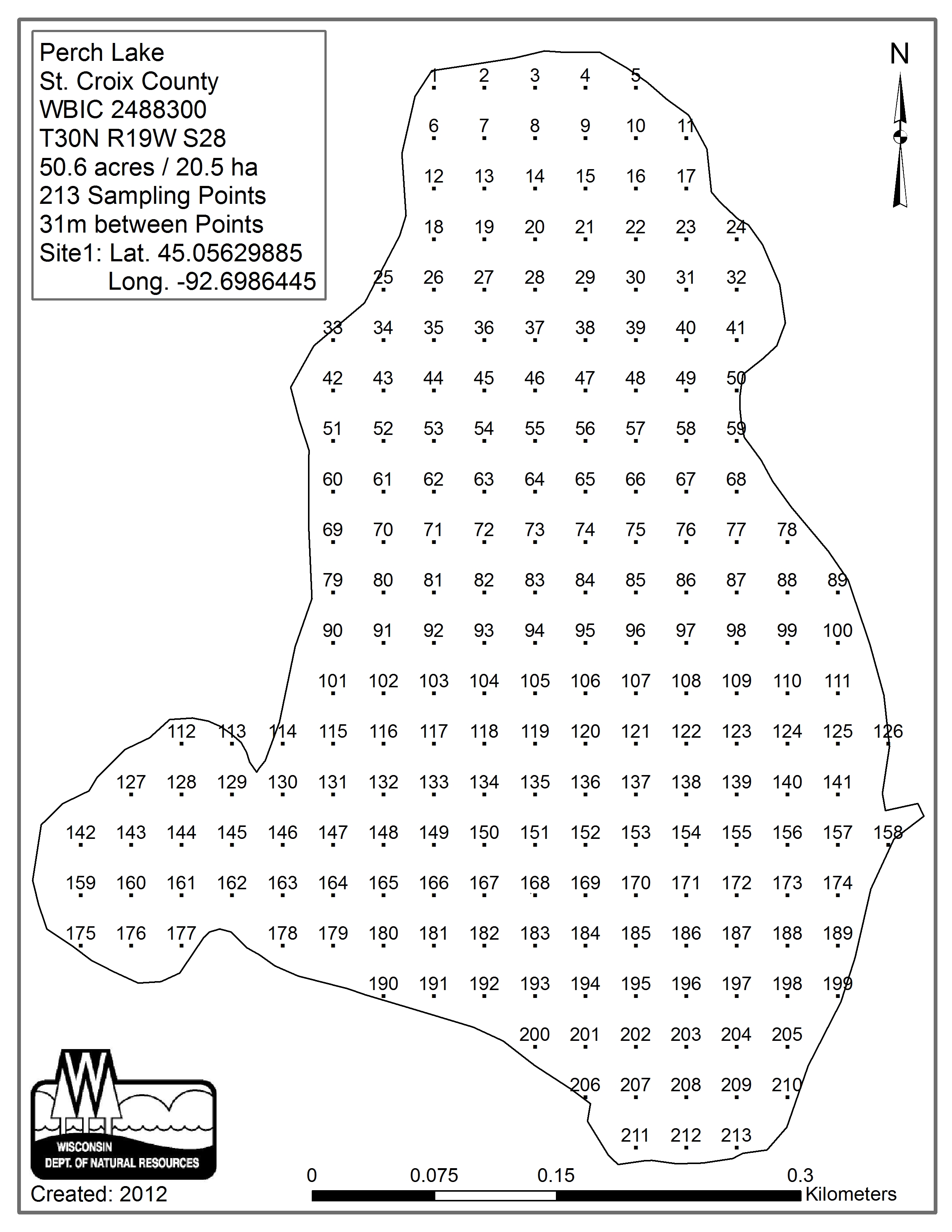 Perch Lake, Saint Croix County - Aquatic Plant Sampling Map (31 mpts)