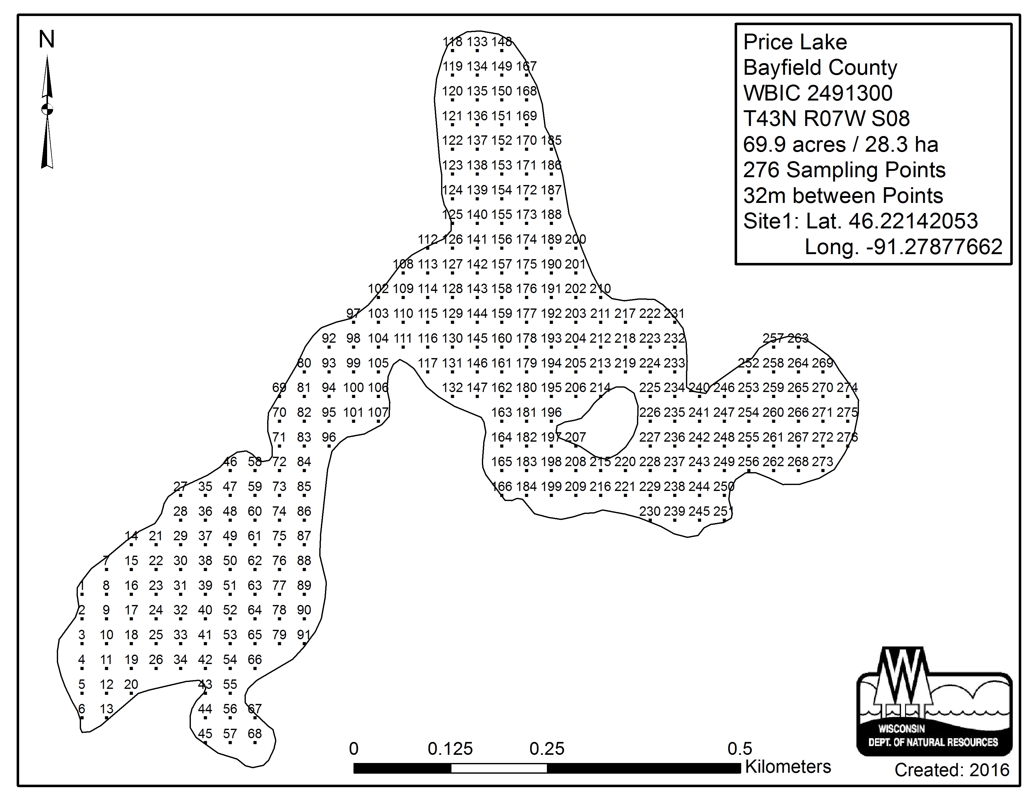 Price Lake, Bayfield County - Aquatic Plant Sampling Map (32 mpts)
