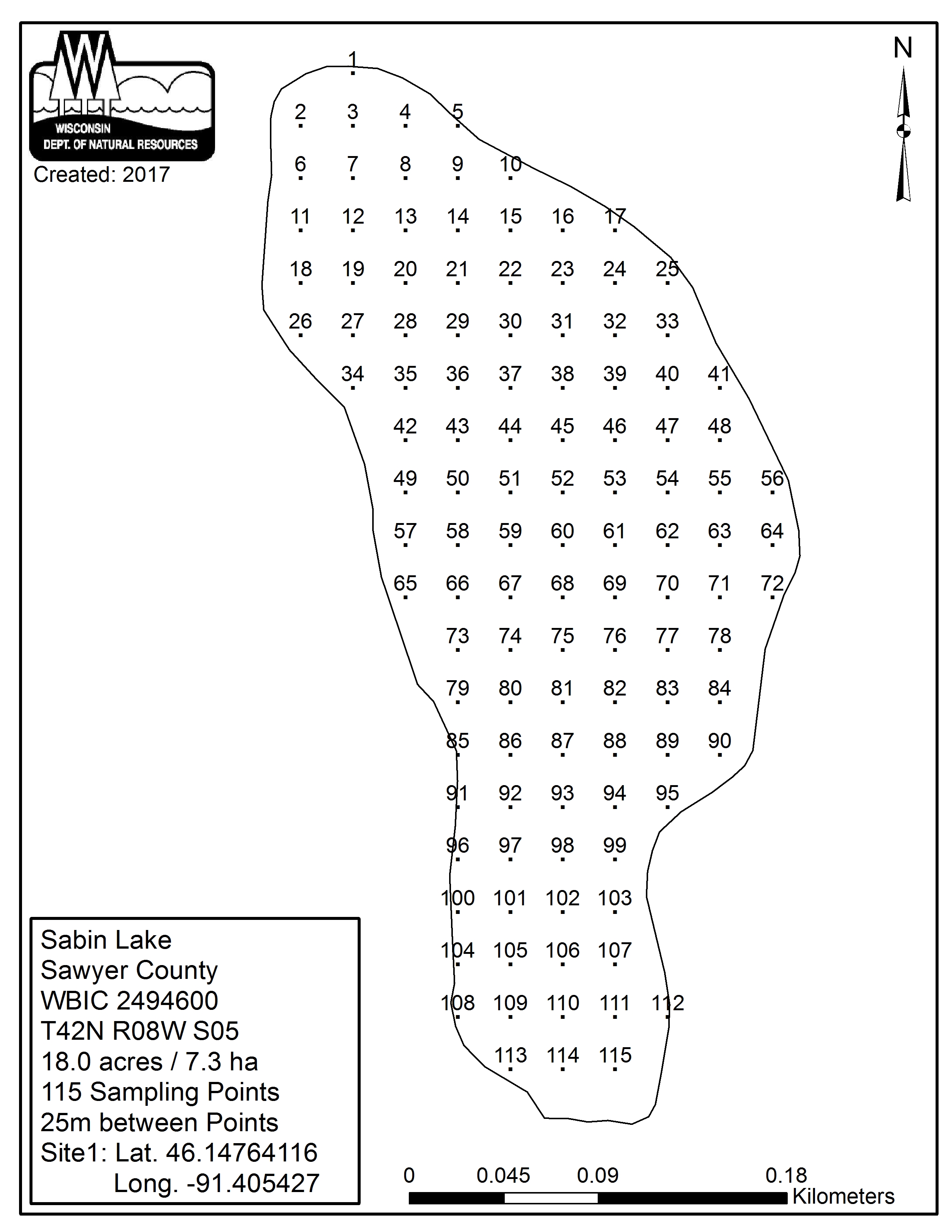 Sabin Lake, Sawyer County - Aquatic Plant Sampling Map (25 mpts)