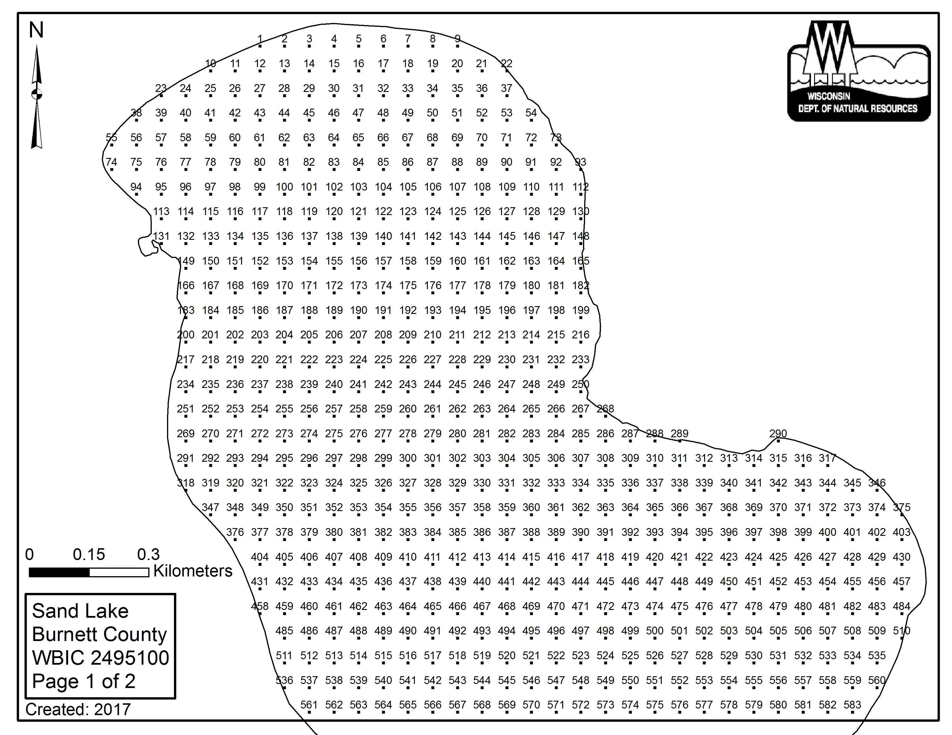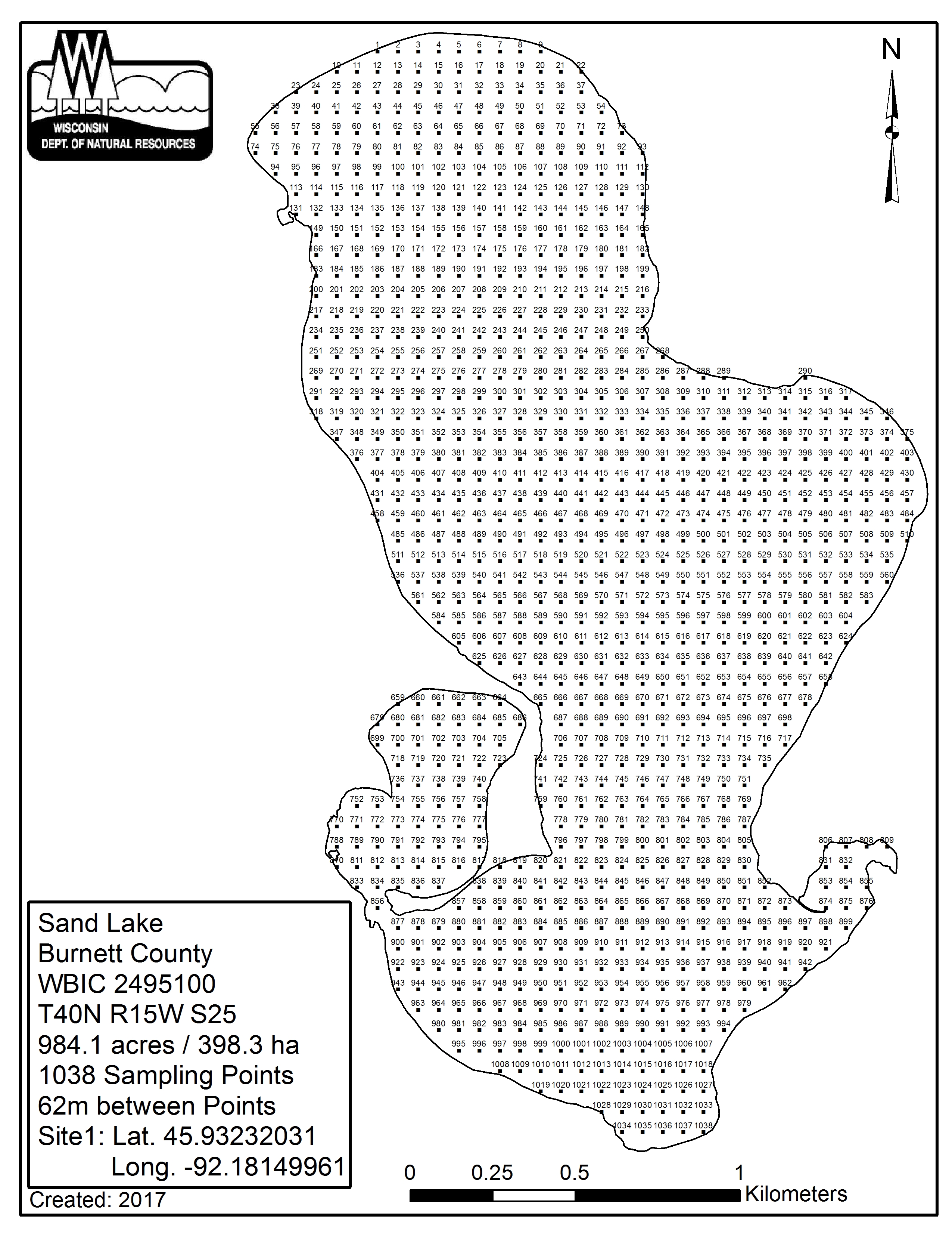 Sand Lake, Burnett County - Aquatic Plant Sampling Map (1)(62 mpts)