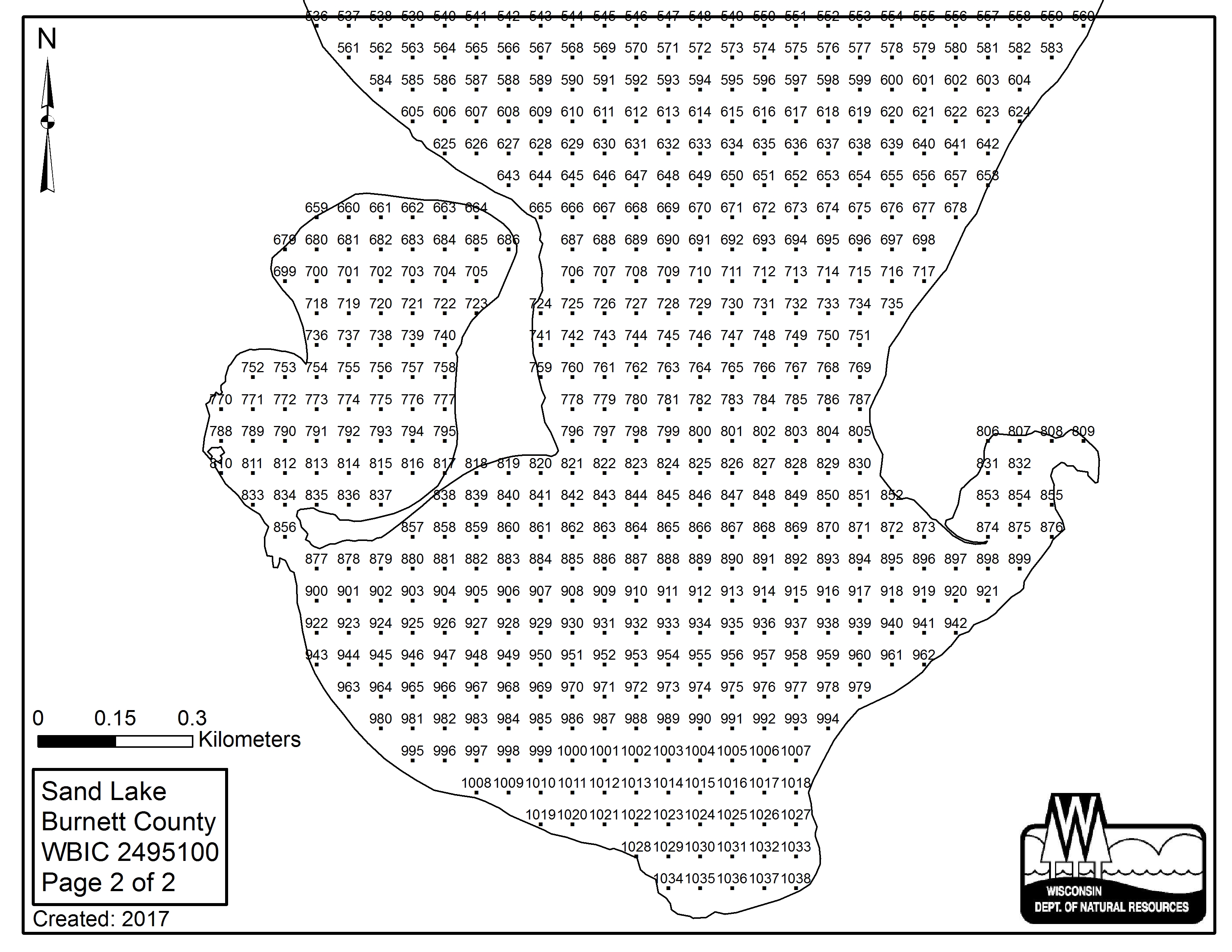 Sand Lake, Burnett County - Aquatic Plant Sampling Map (2)(62 mpts)