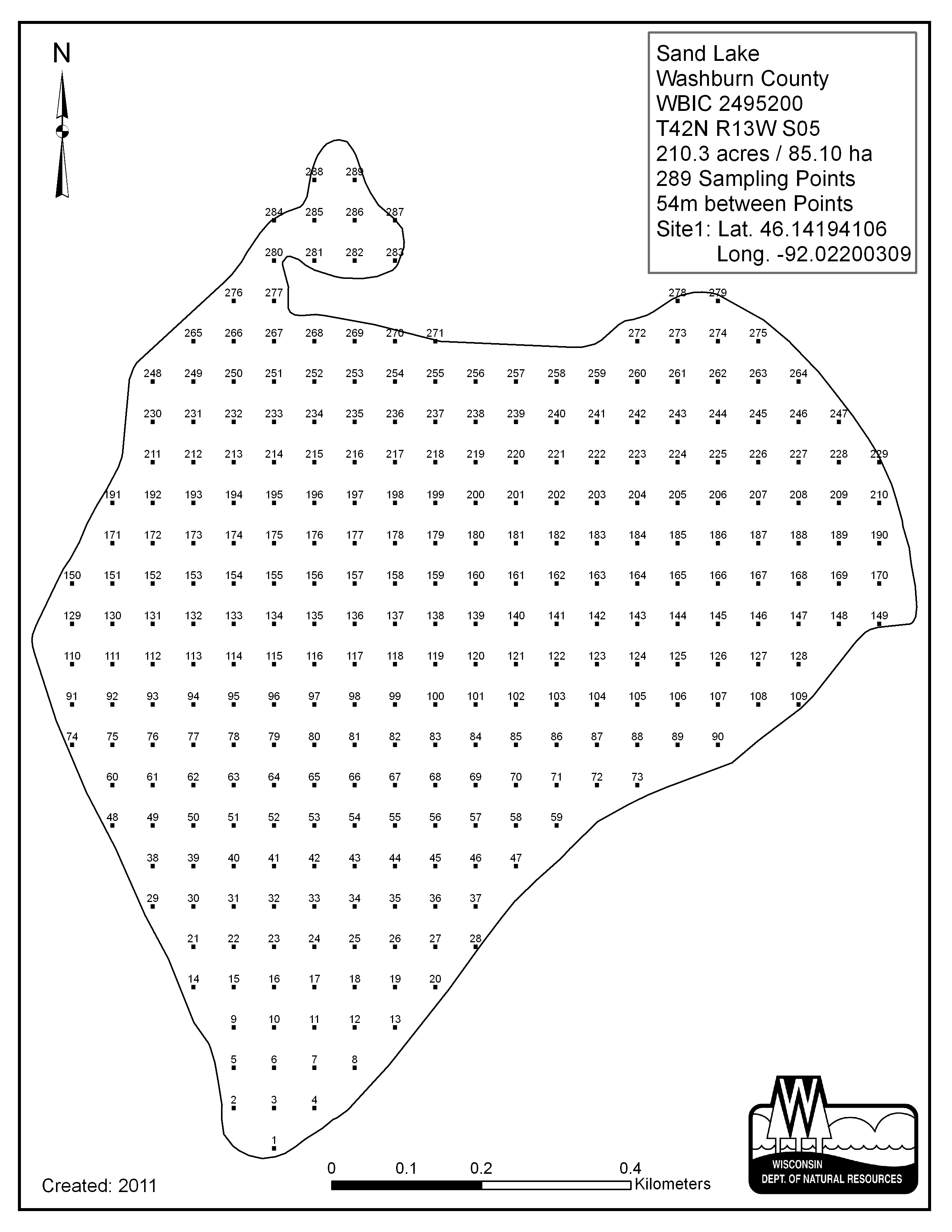 Sand Lake, Washburn County - Aquatic Plant Sampling Map (54 mpts)