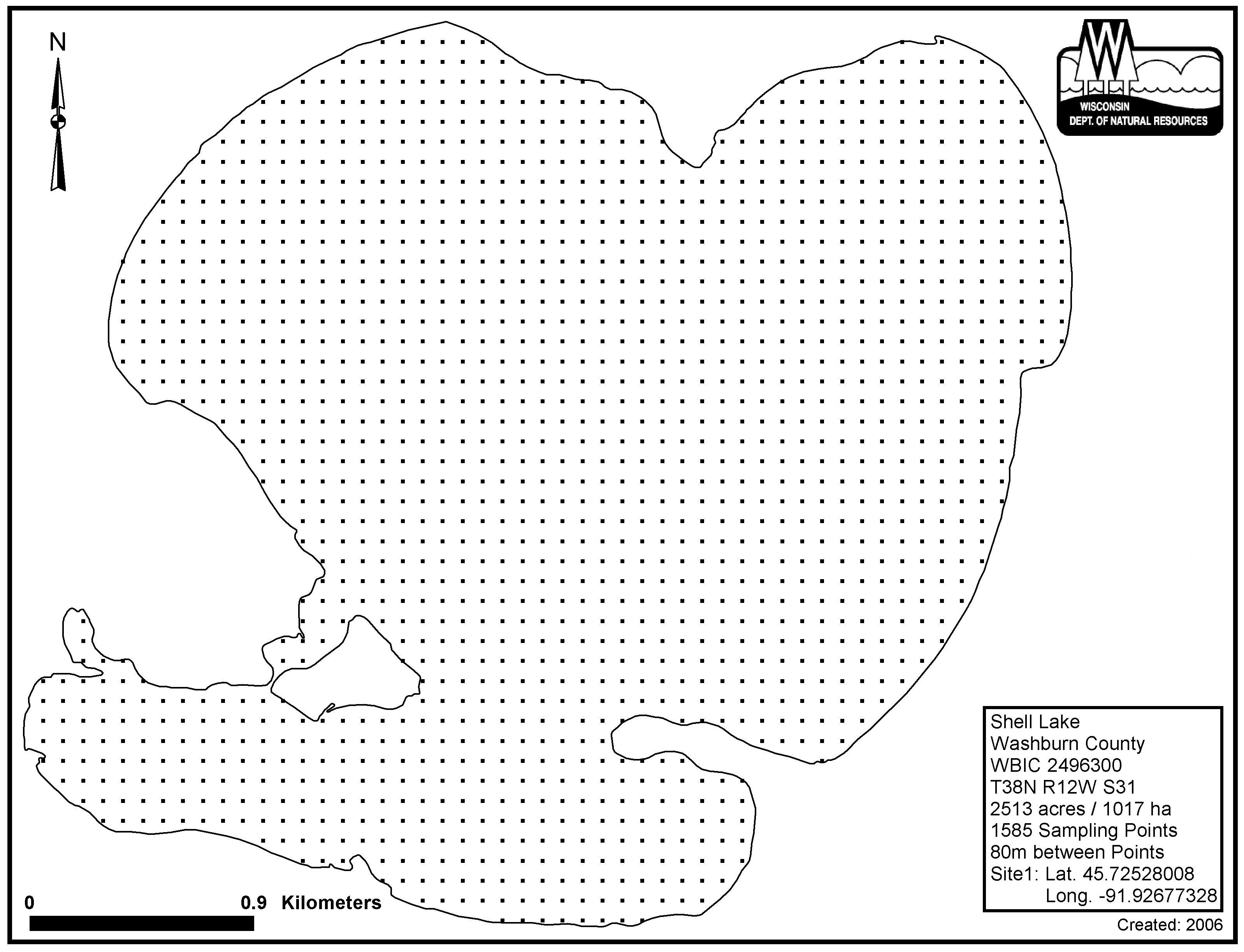 Shell Lake, Washburn County - Aquatic Plant Sampling Map (1)(80 mpts)