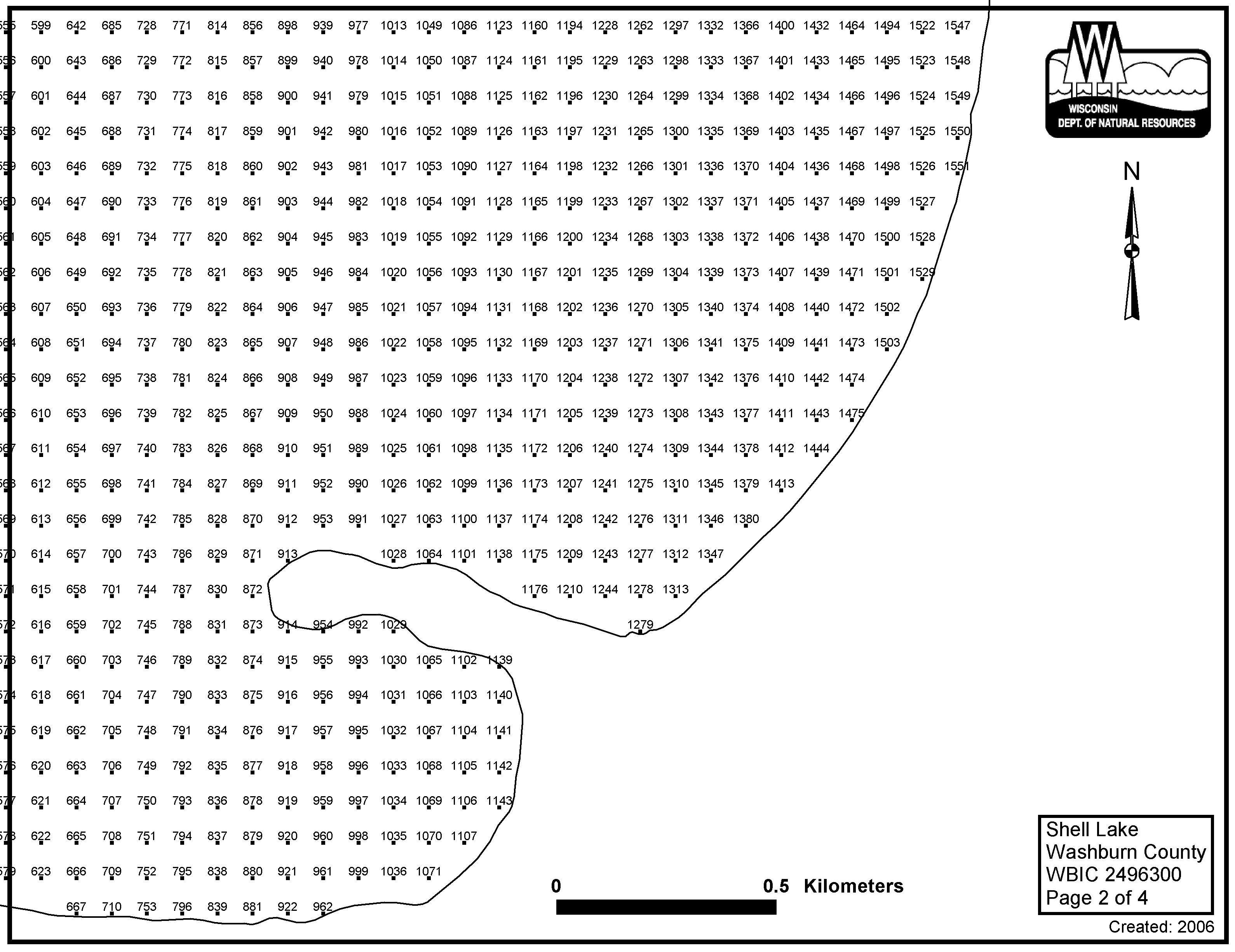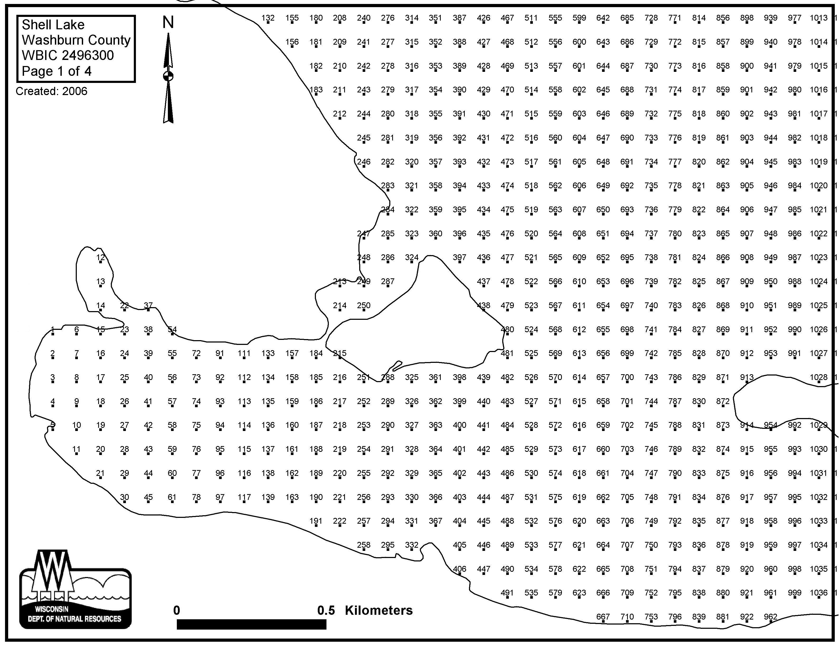 Shell Lake, Washburn County - Aquatic Plant Sampling Map (4)(80 mpts)