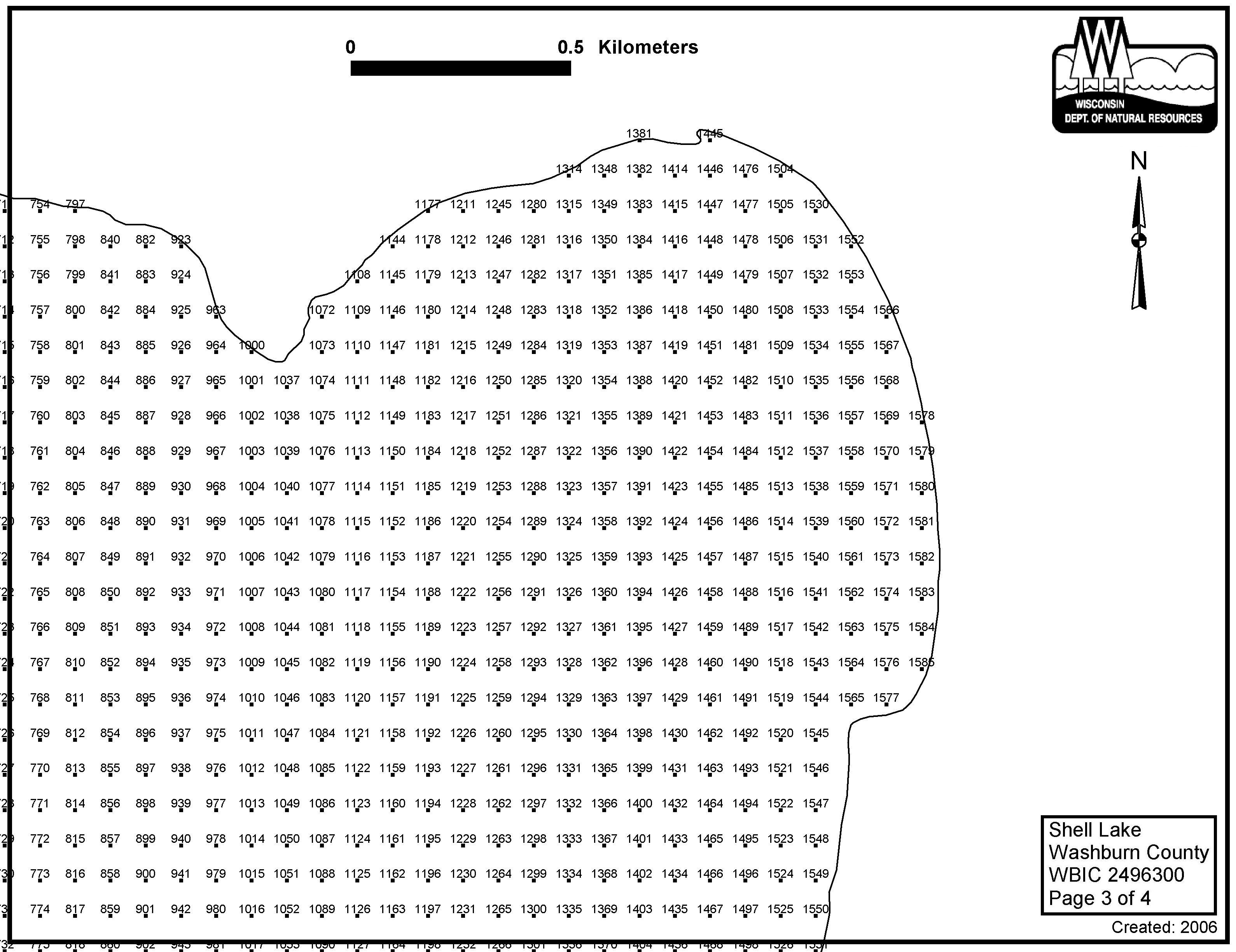 Shell Lake, Washburn County - Aquatic Plant Sampling Map (3)(80 mpts)