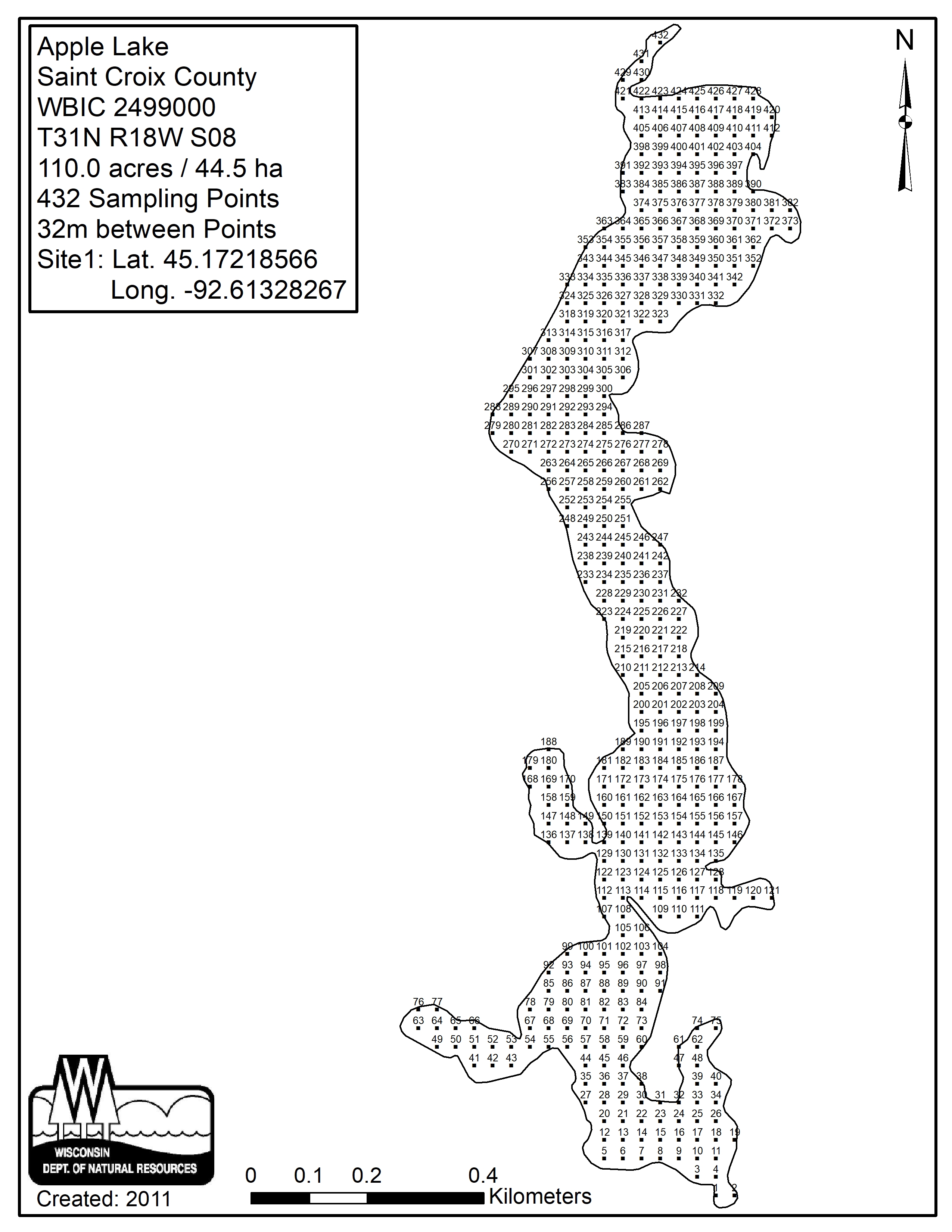 Apple Lake, Saint Croix County - Aquatic Plant Sampling Map (32 mpts)