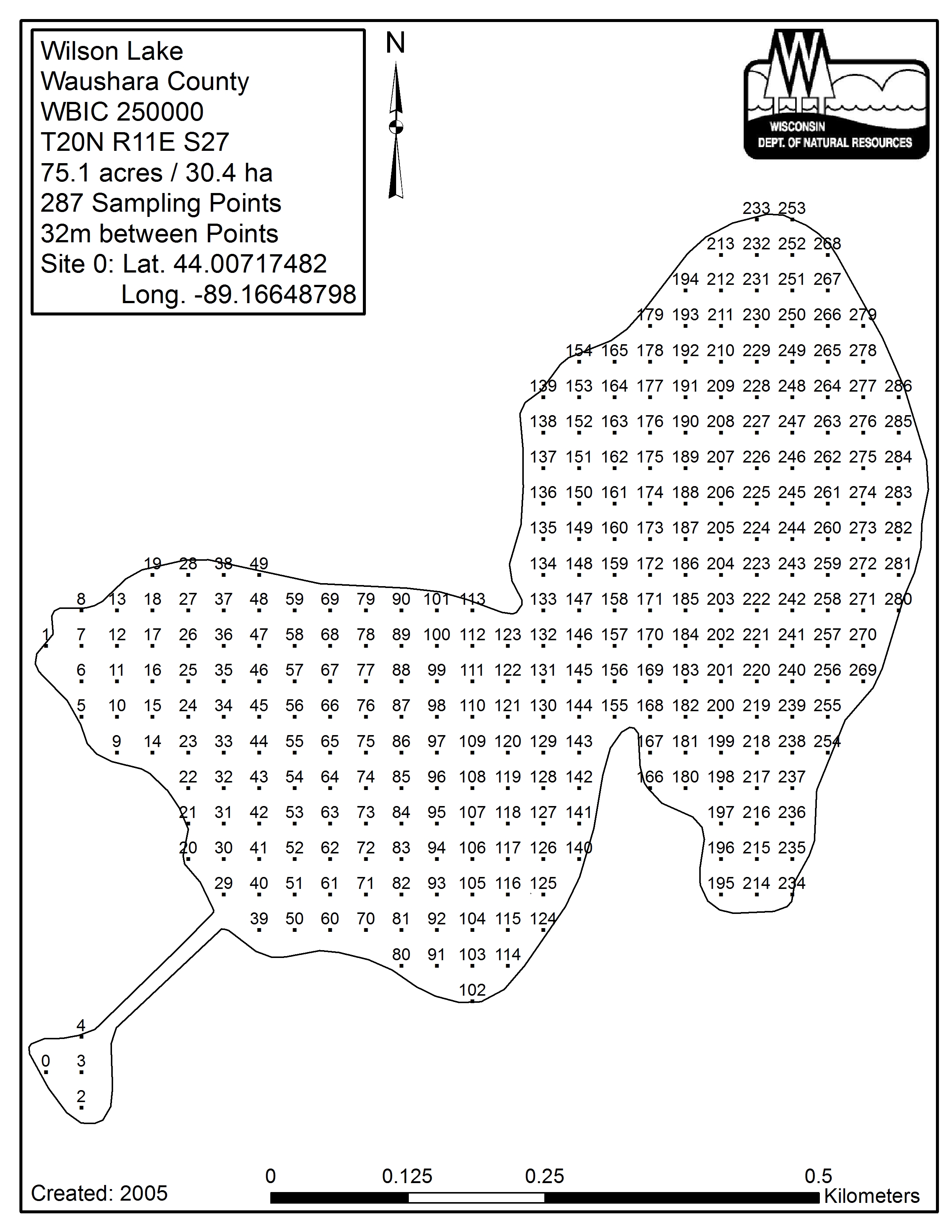 Wilson Lake, Waushara County - Aquatic Plant Sampling Map (32 mpts)