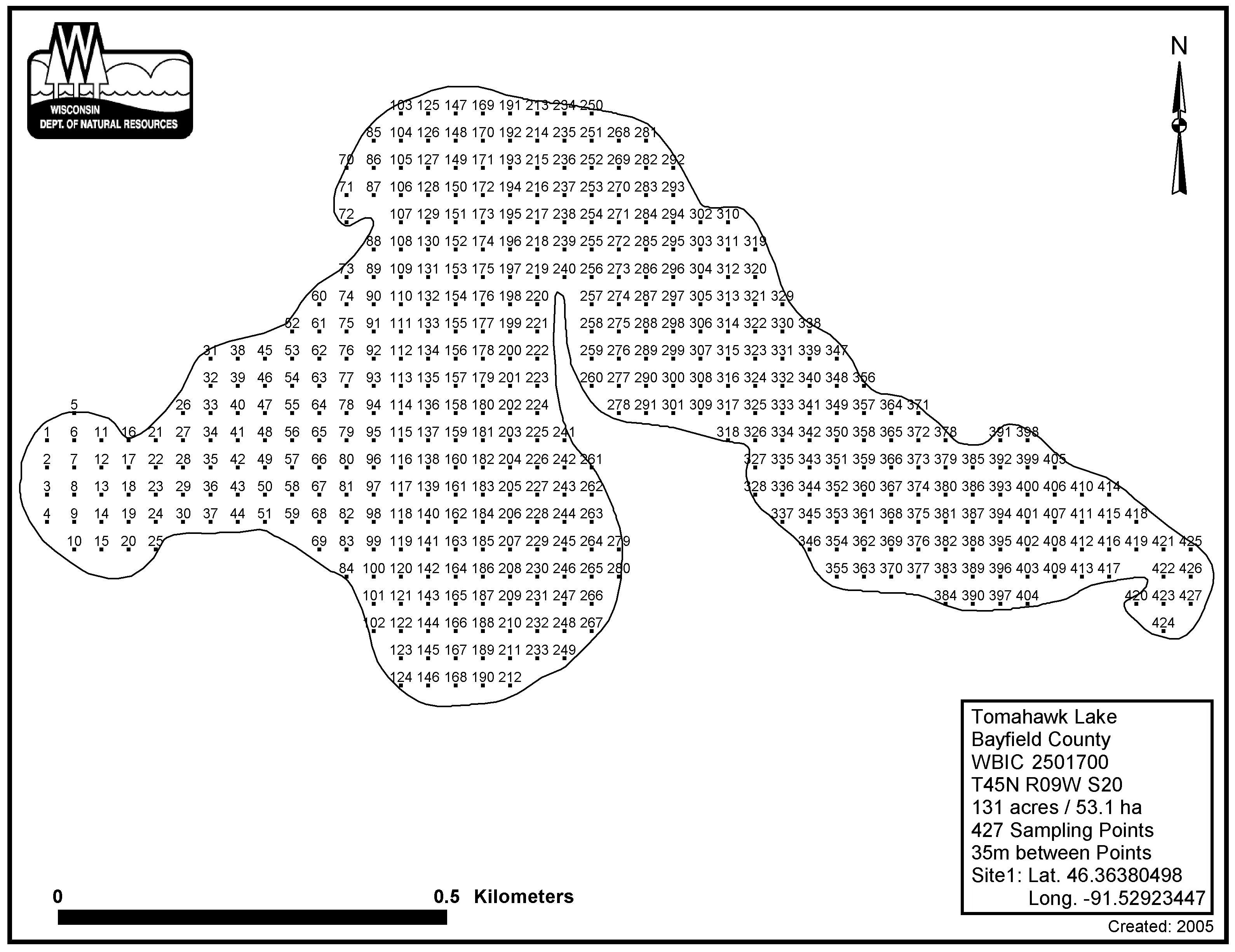Tomahawk Lake, Bayfield County - Aquatic Plant Sampling Map (35 mpts)