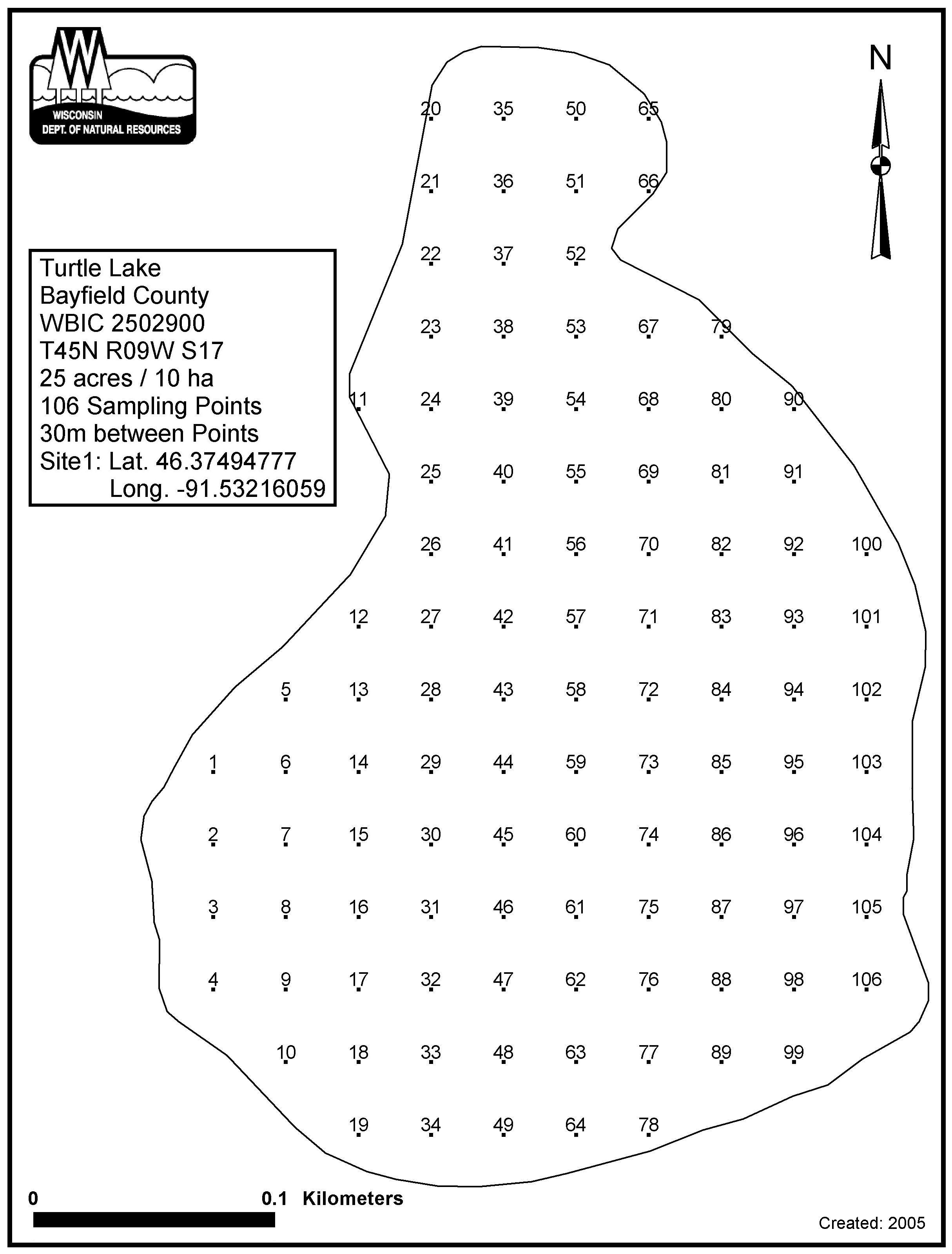 Turtle Lake, Bayfield County - Aquatic Plant Sampling Map (30 mpts)