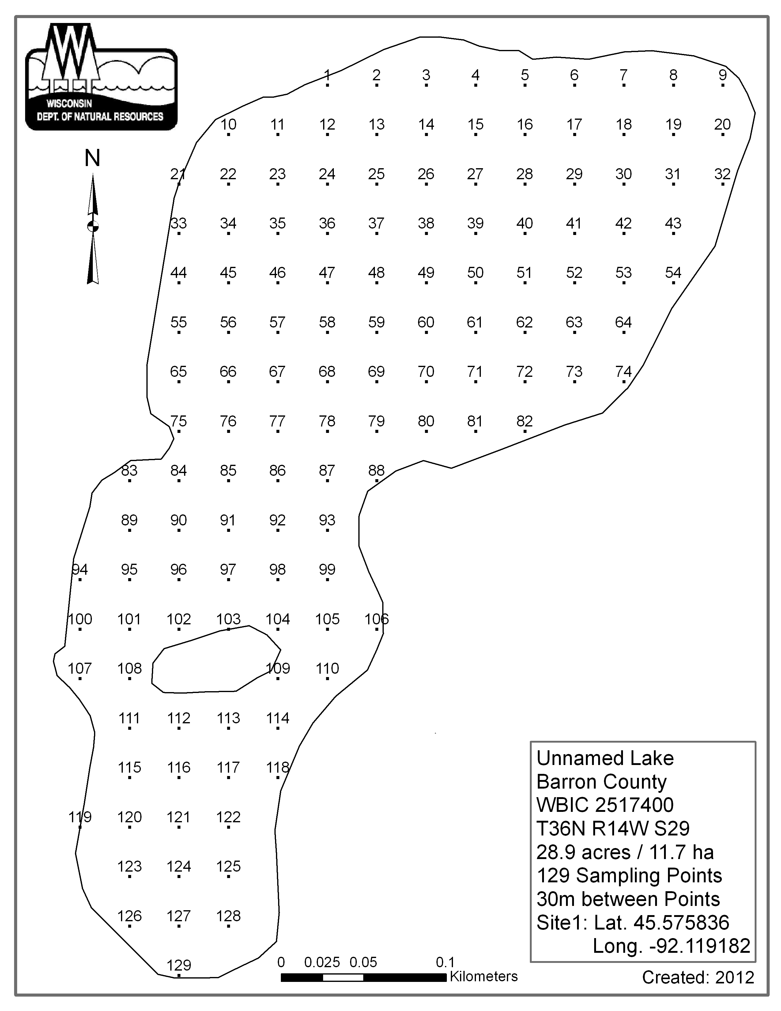 Unnamed Lake, Barron County (2517400) - Aquatic Plant Sampling Map (30 mpts)