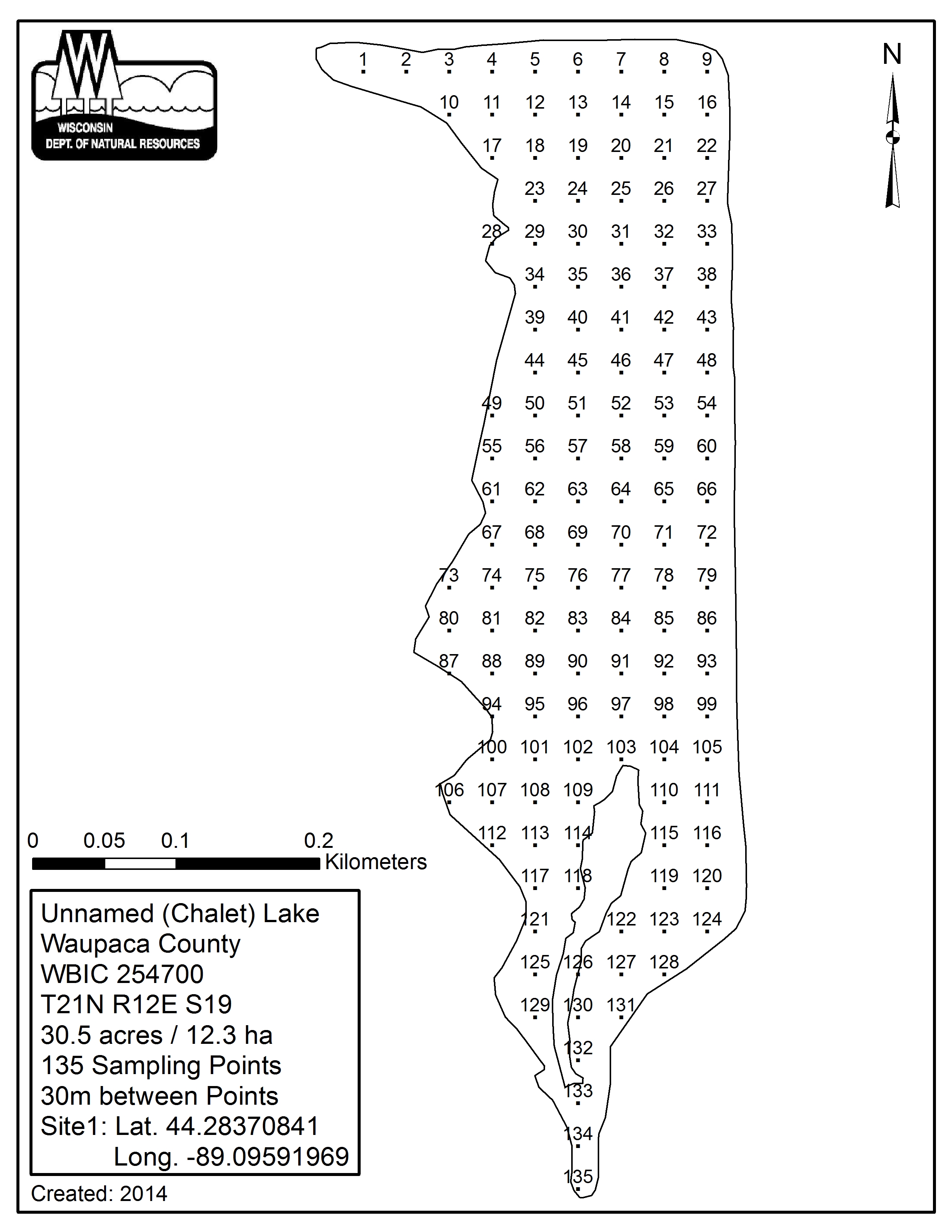 Chalet Lake, Waupaca County - Aquatic Plant Sampling Map (30 mpts)