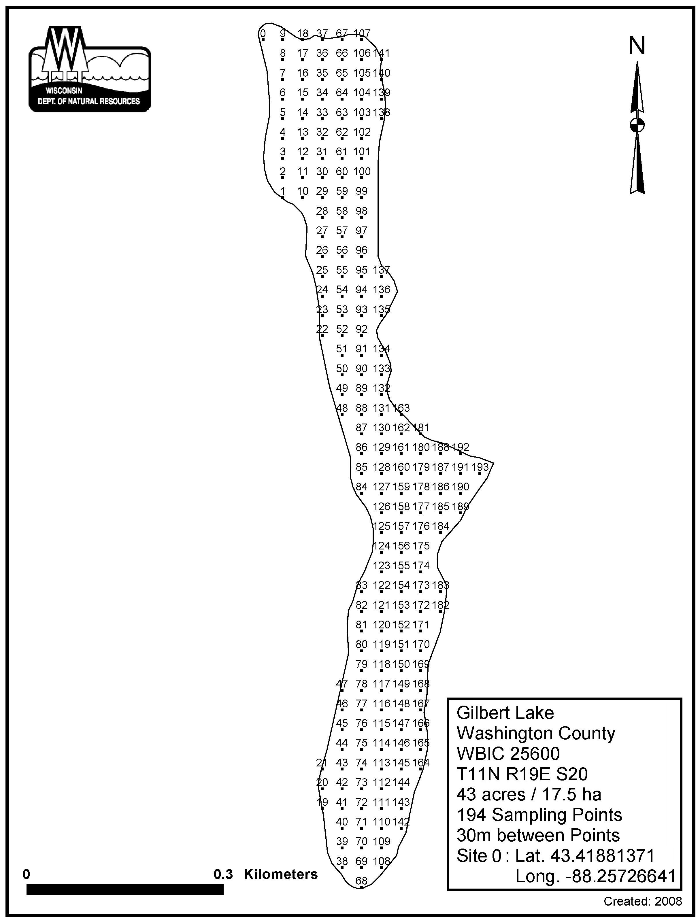 Gilbert Lake, Washington County - Aquatic Plant Sampling Map (30 mpts)