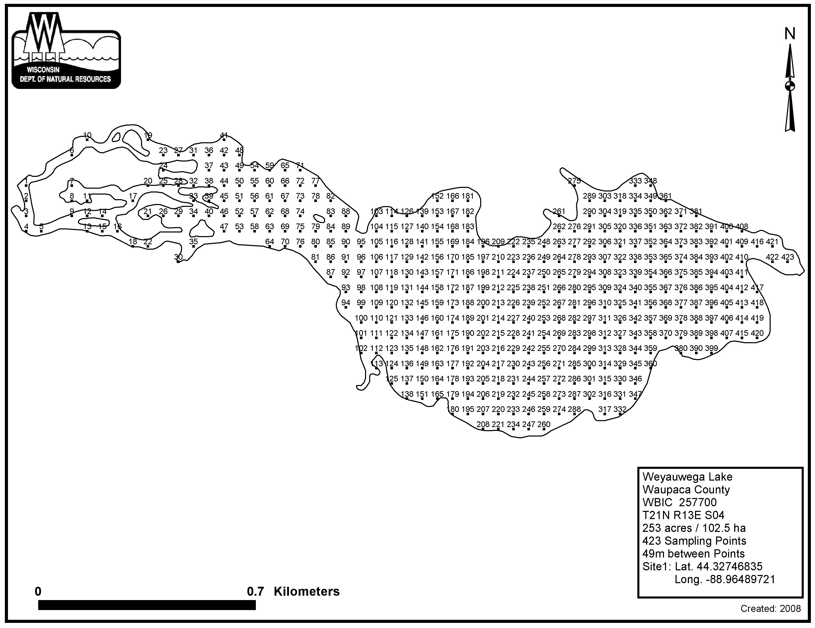 Weyauwega Lake, Waupaca County - Aquatic Plant Sampling Map (49 mpts)