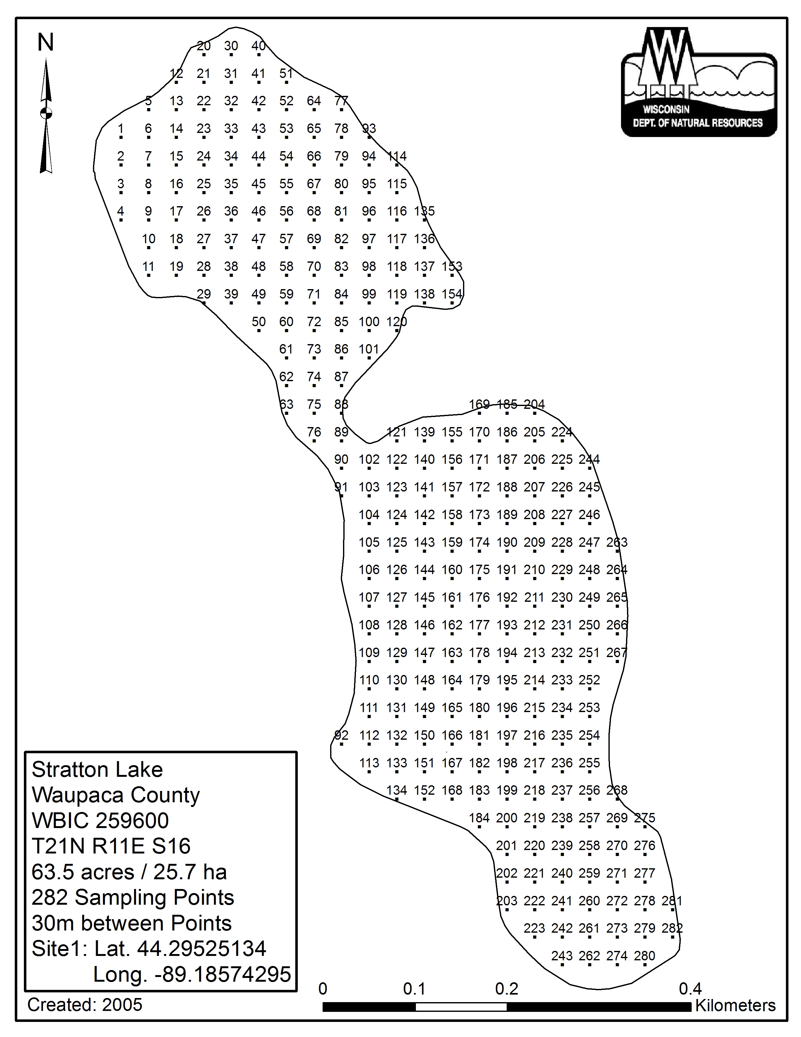 Stratton Lake, Waupaca County - Aquatic Plant Sampling Map (30 mpts)