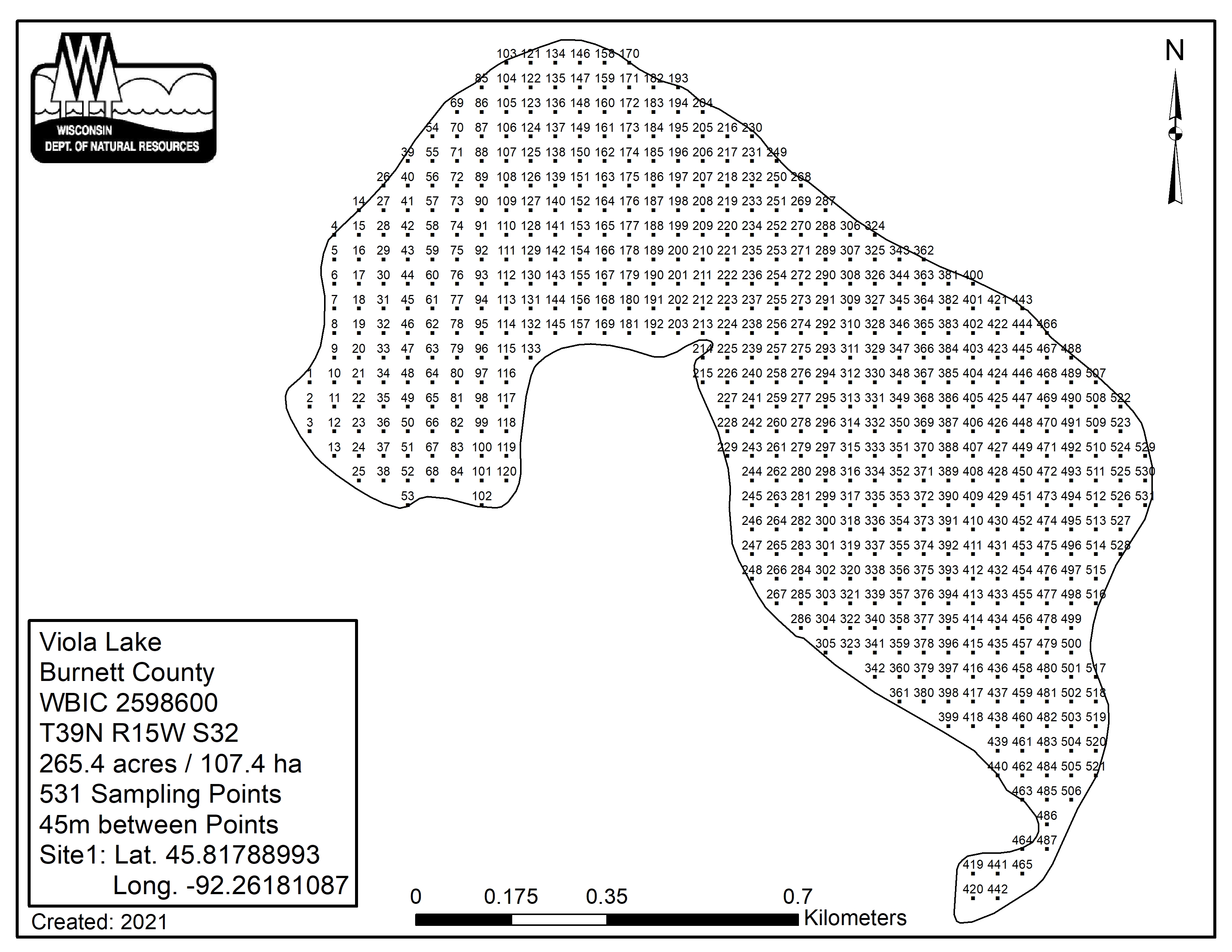Viola Lake, Burnett County - Aquatic Plant Sampling Map (45 mpts)