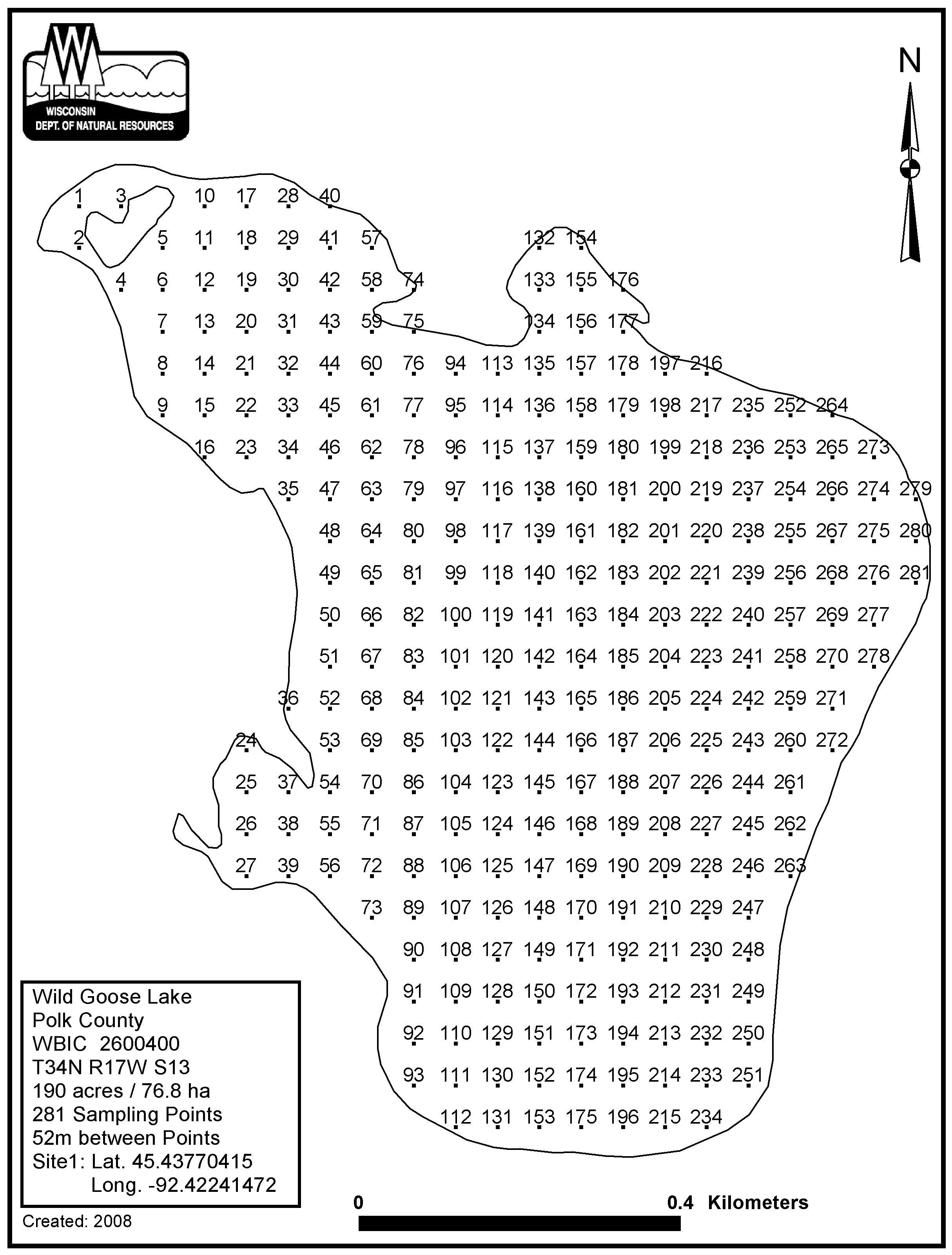 Wild Goose Lake, Polk County - Aquatic Plant Sampling Map (52 mpts)