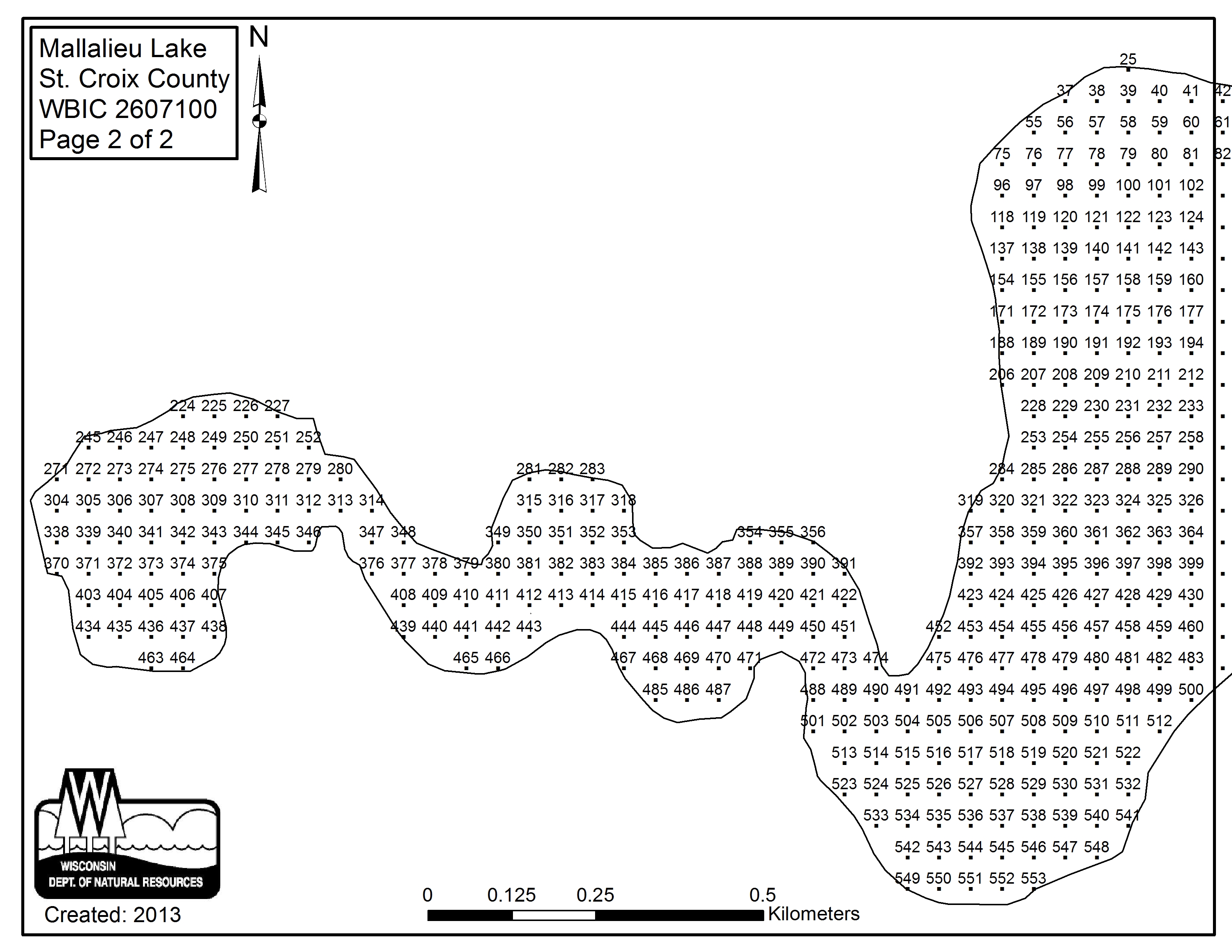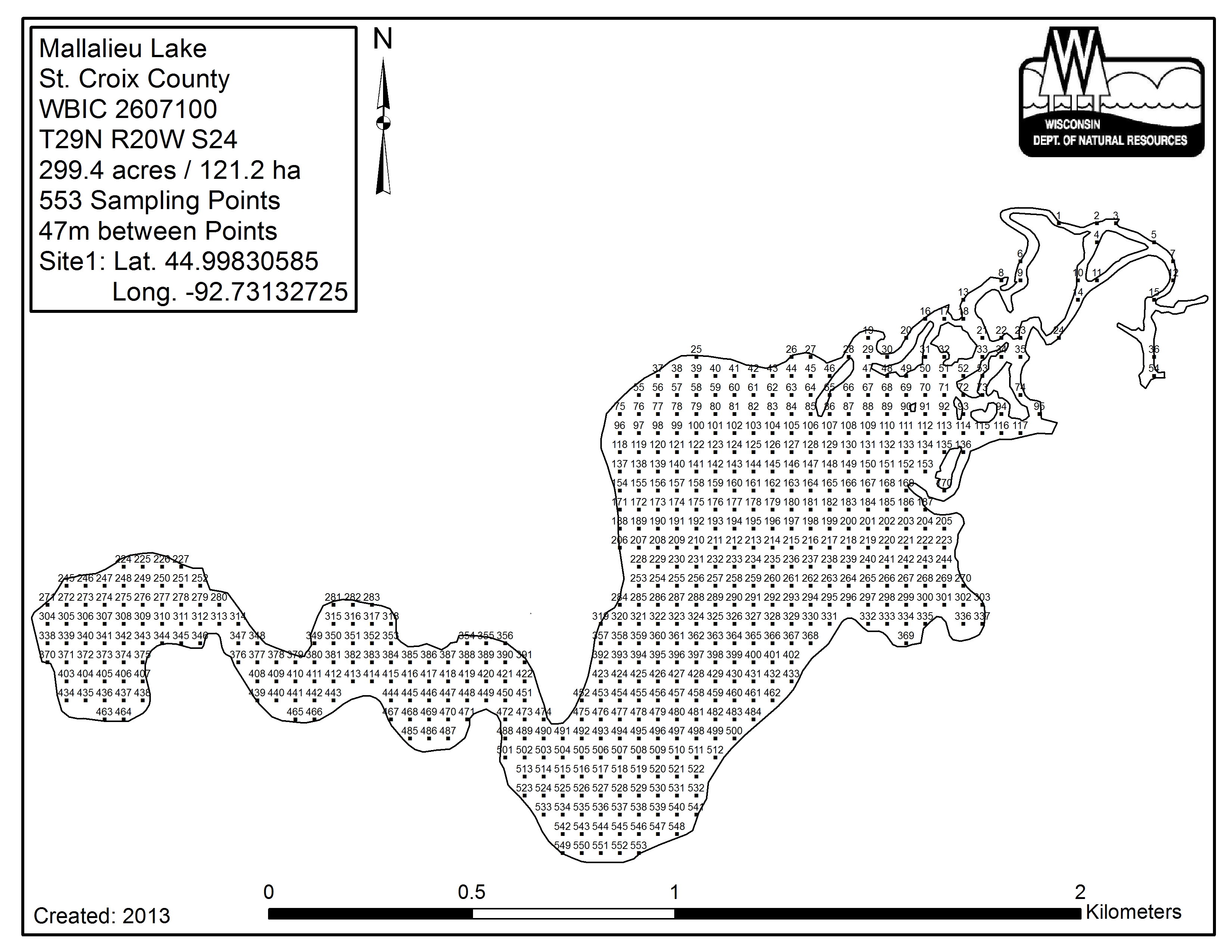 Mallalieu Lake, Saint Croix County - Aquatic Plant Sampling Map (2)(47 mpts)