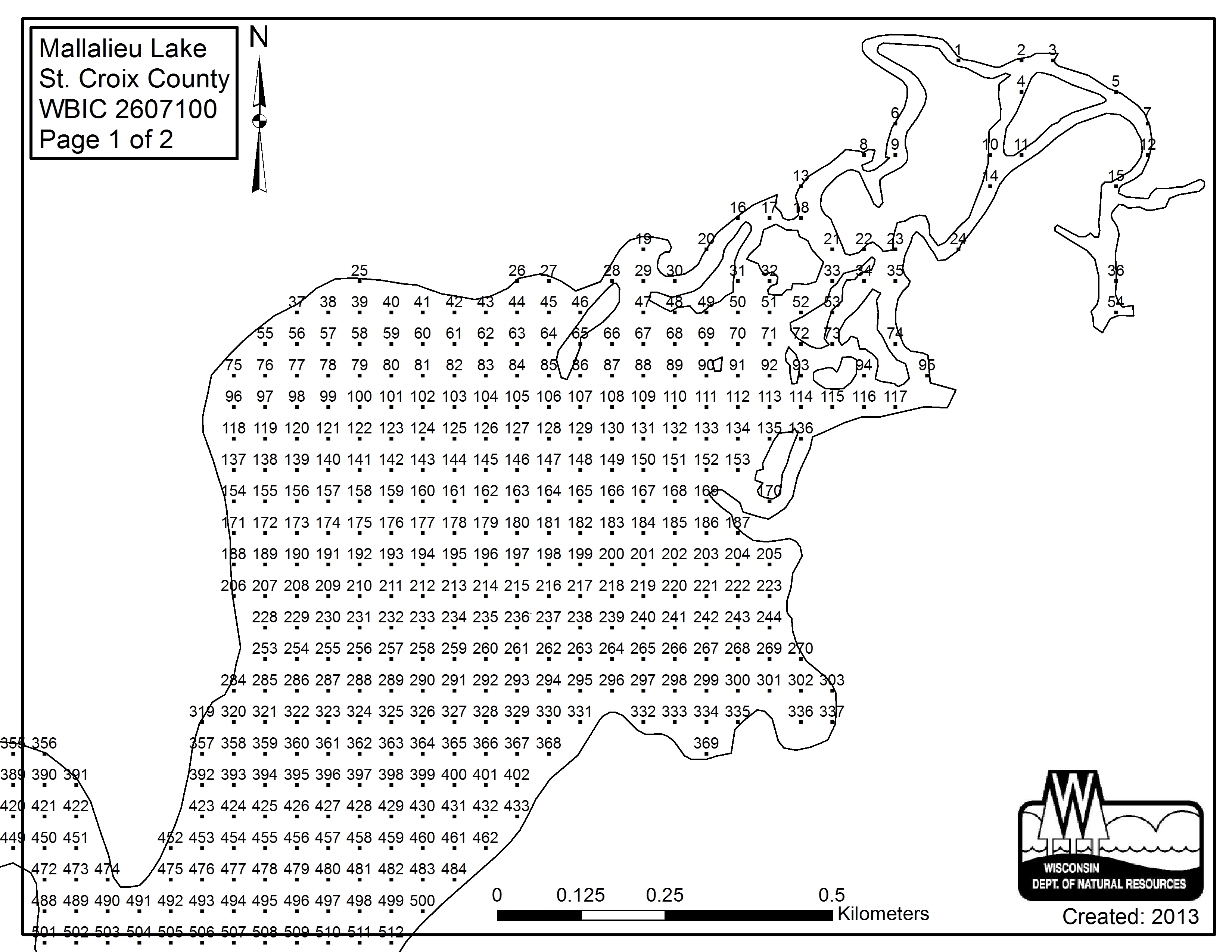 Mallalieu Lake, Saint Croix County - Aquatic Plant Sampling Map (1)(47 mpts)