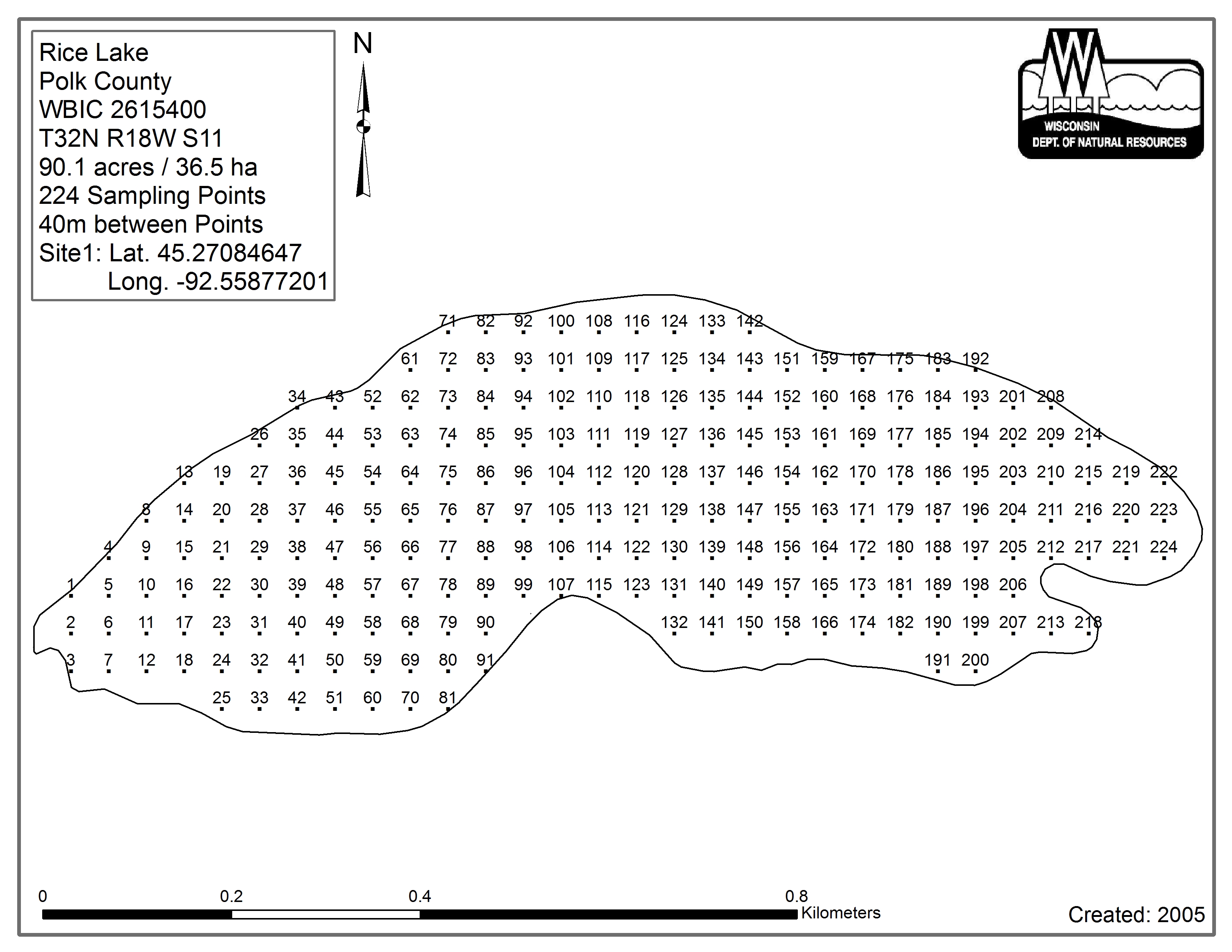 Rice Lake, Polk County (2615400) - Aquatic Plant Sampling Map (40 mpts)