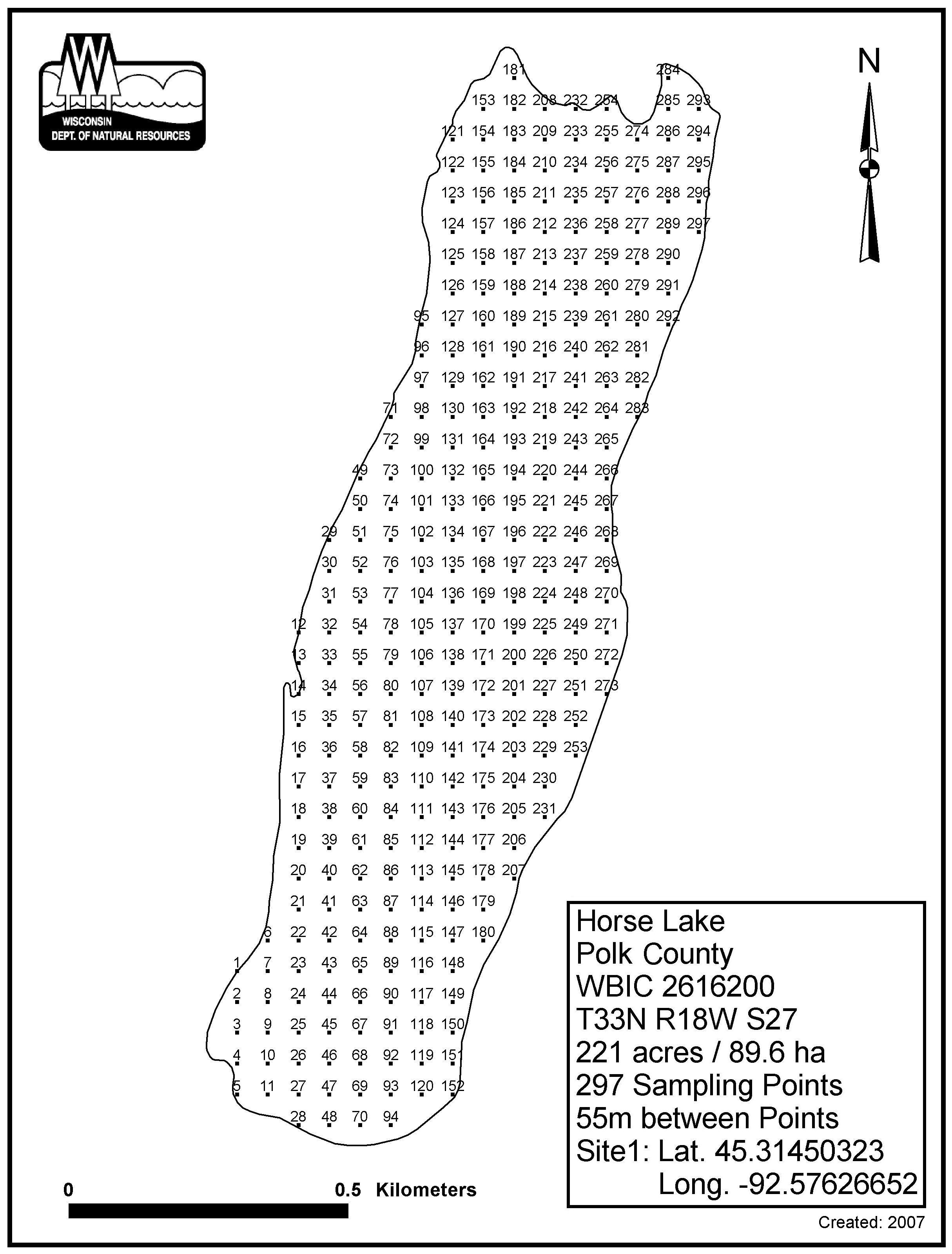 Horse Lake, Polk County - Aquatic Plant Sampling Map (55 mpts)