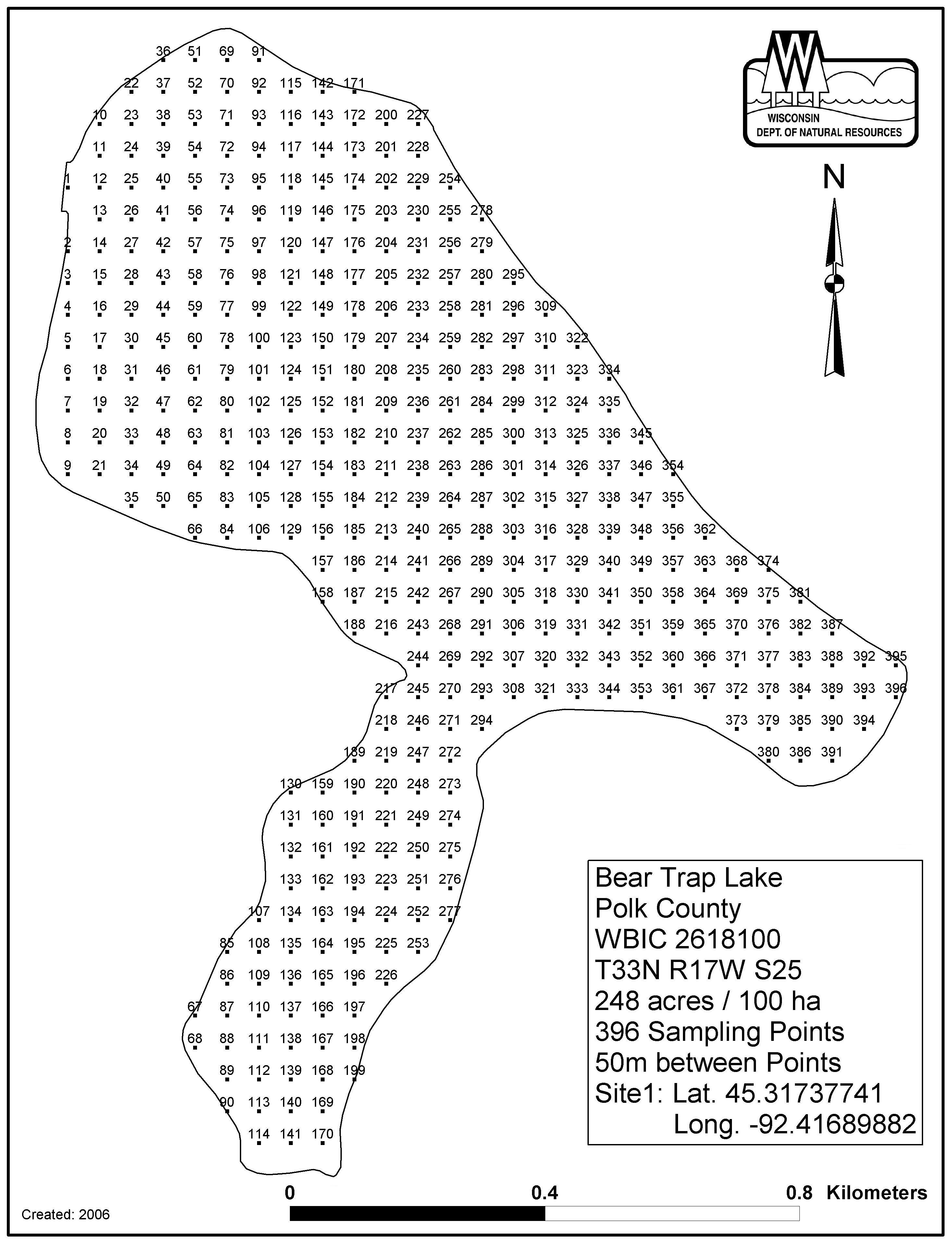 Bear Trap Lake, Polk County - Aquatic Plant Sampling Map (50 mpts)
