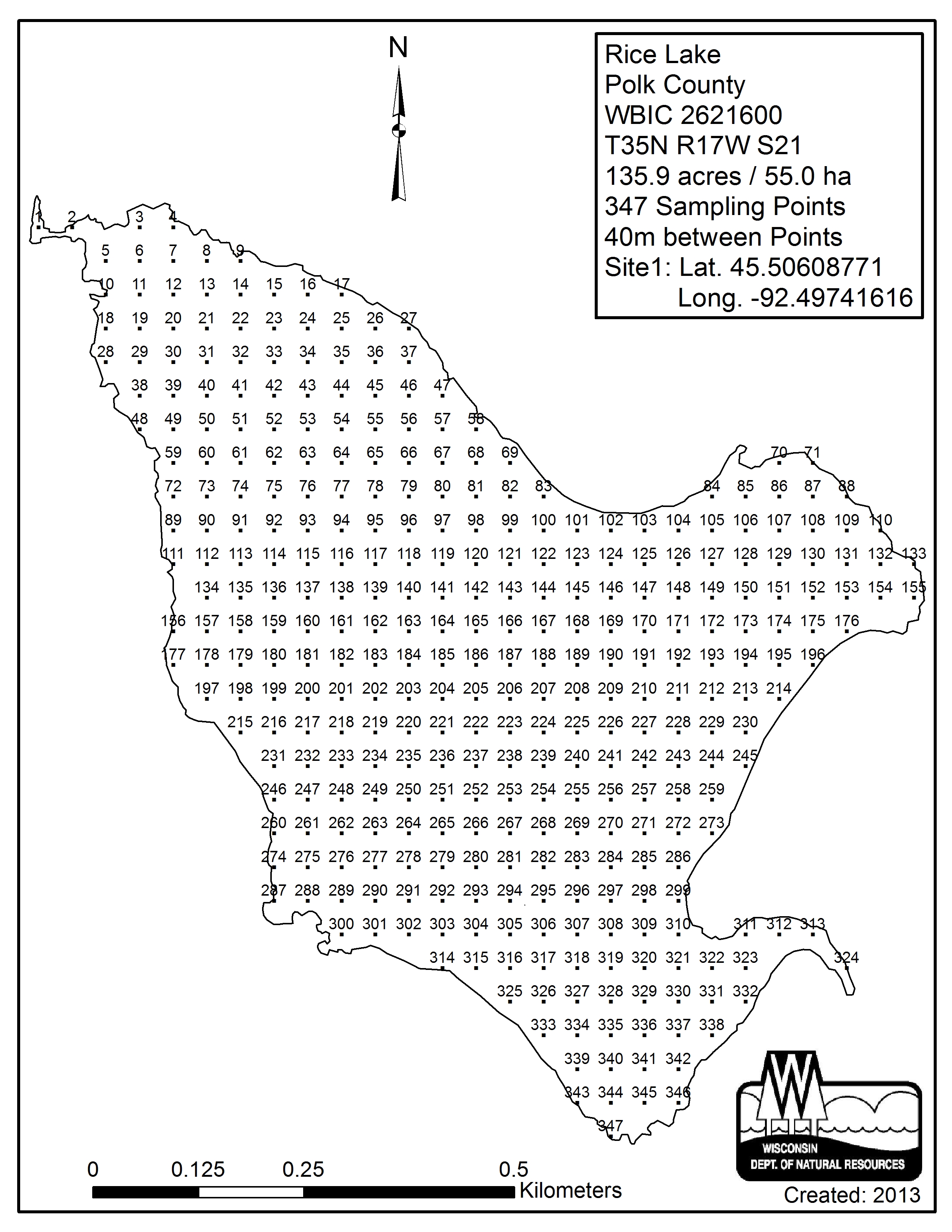 Rice Lake, Polk County (2621600) - Aquatic Plant Sampling Map (40 mpts)