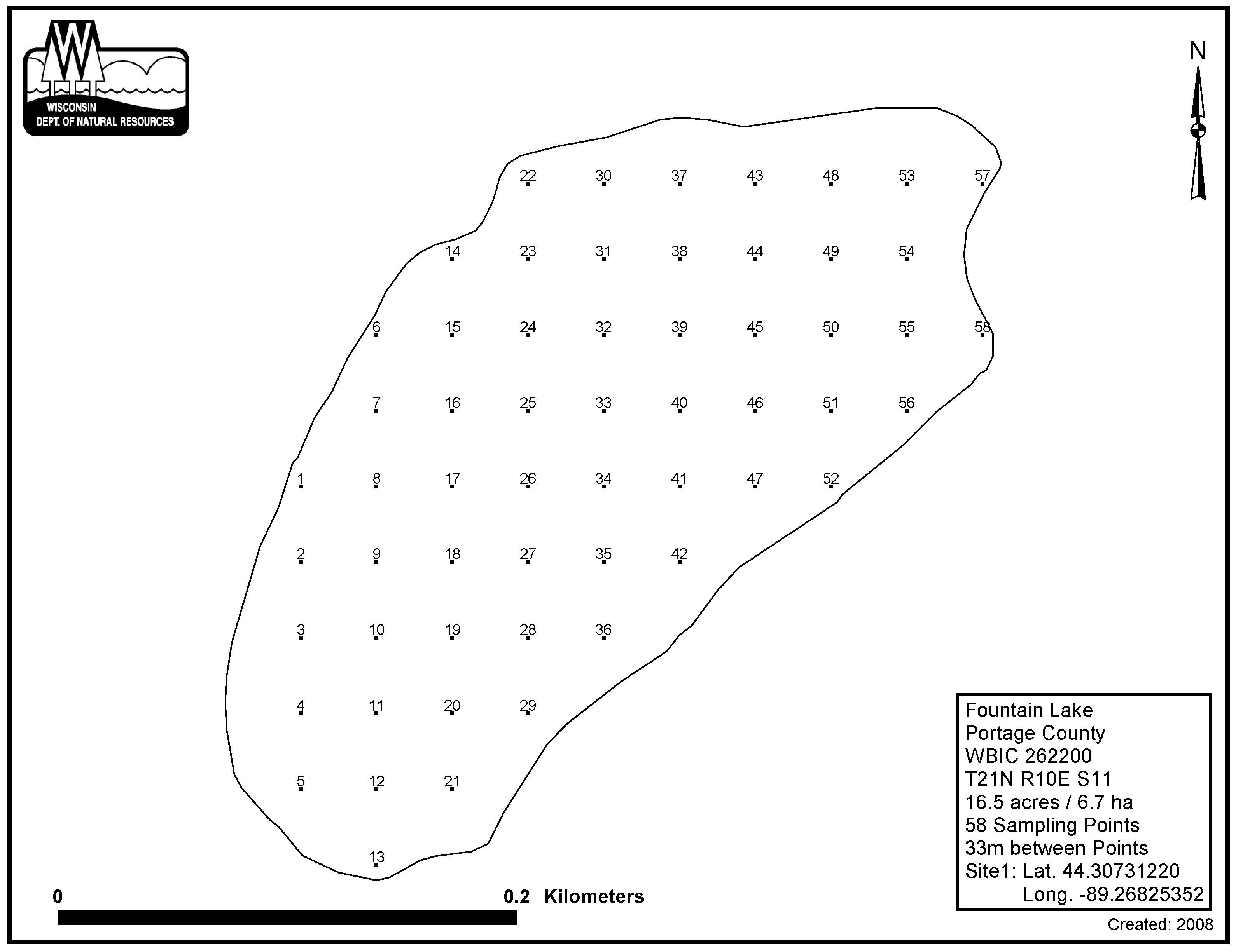 Fountain Lake, Portage County - Aquatic Plant Sampling Map (33 mpts)