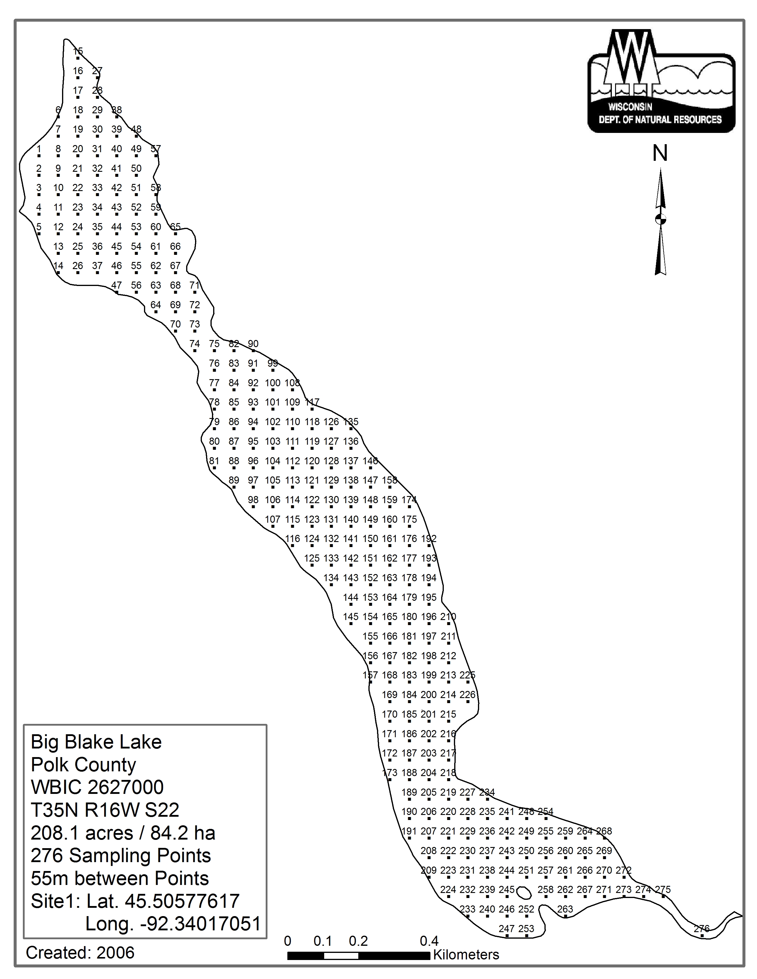 Big Blake Lake, Polk County - Aquatic Plant Sampling Map (55 mpts)