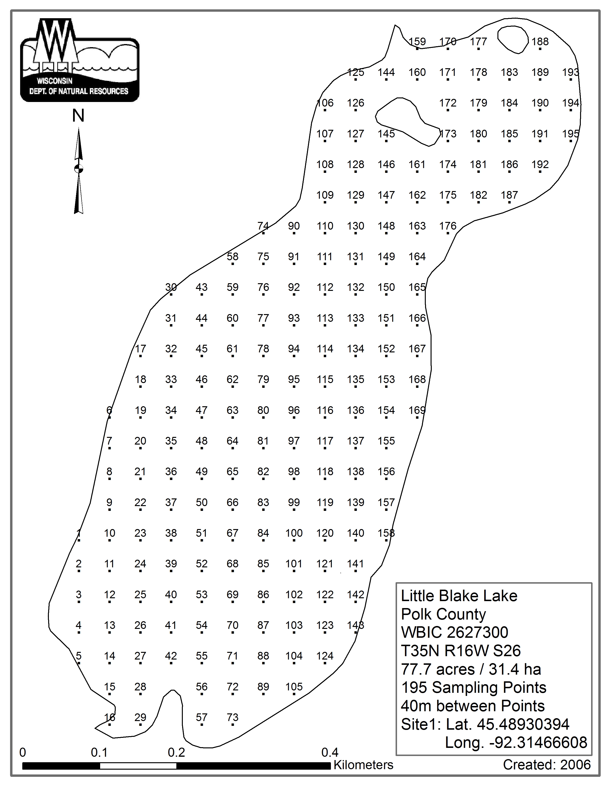 Little Blake Lake, Polk County - Aquatic Plant Sampling Map (40 mpts)