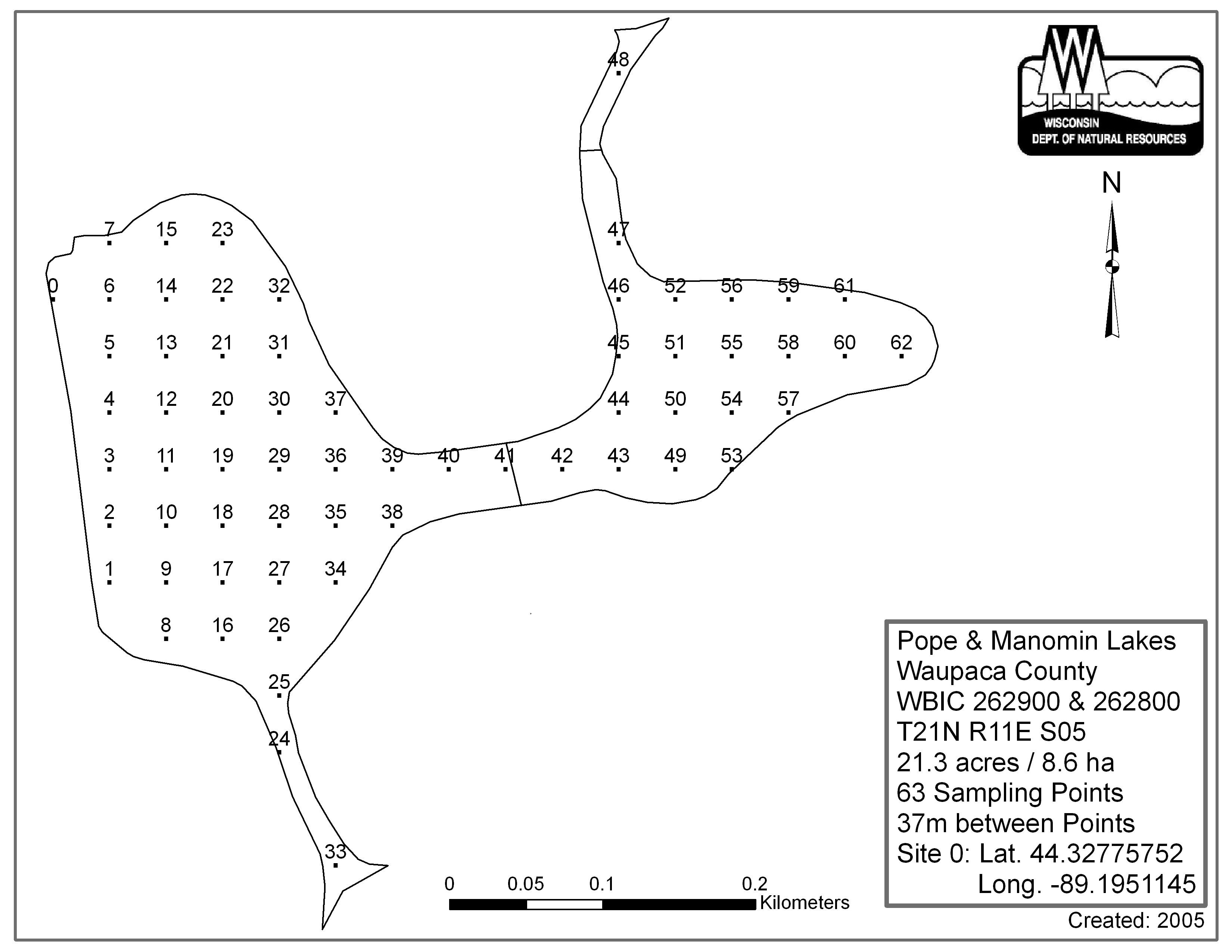 Pope Lake, Waupaca County - Aquatic Plant Sampling Map (37 mpts)