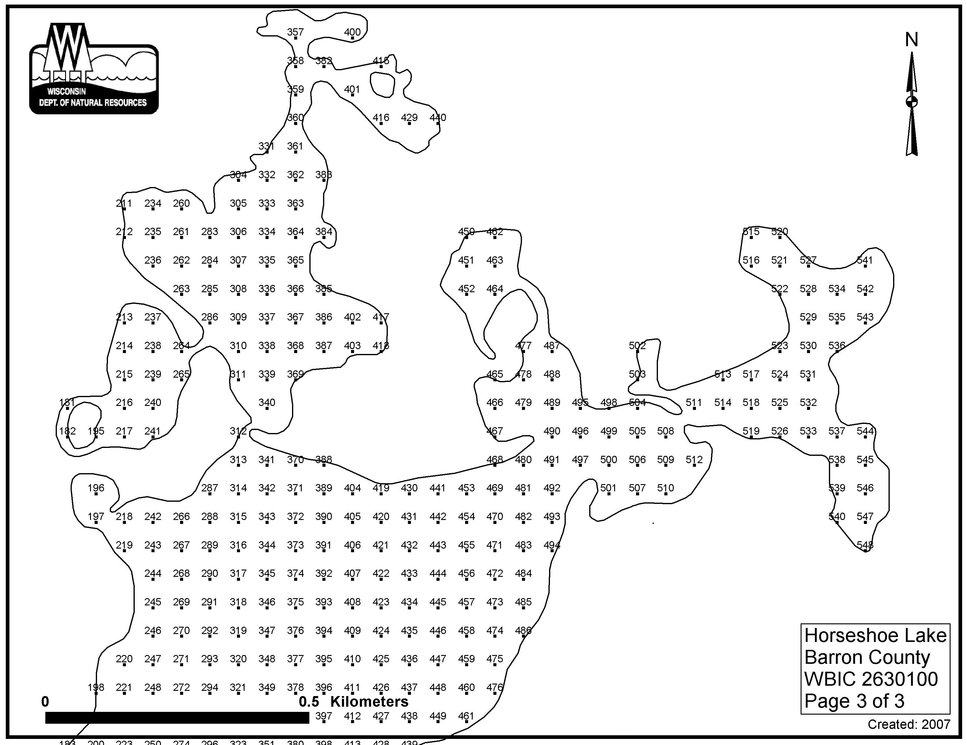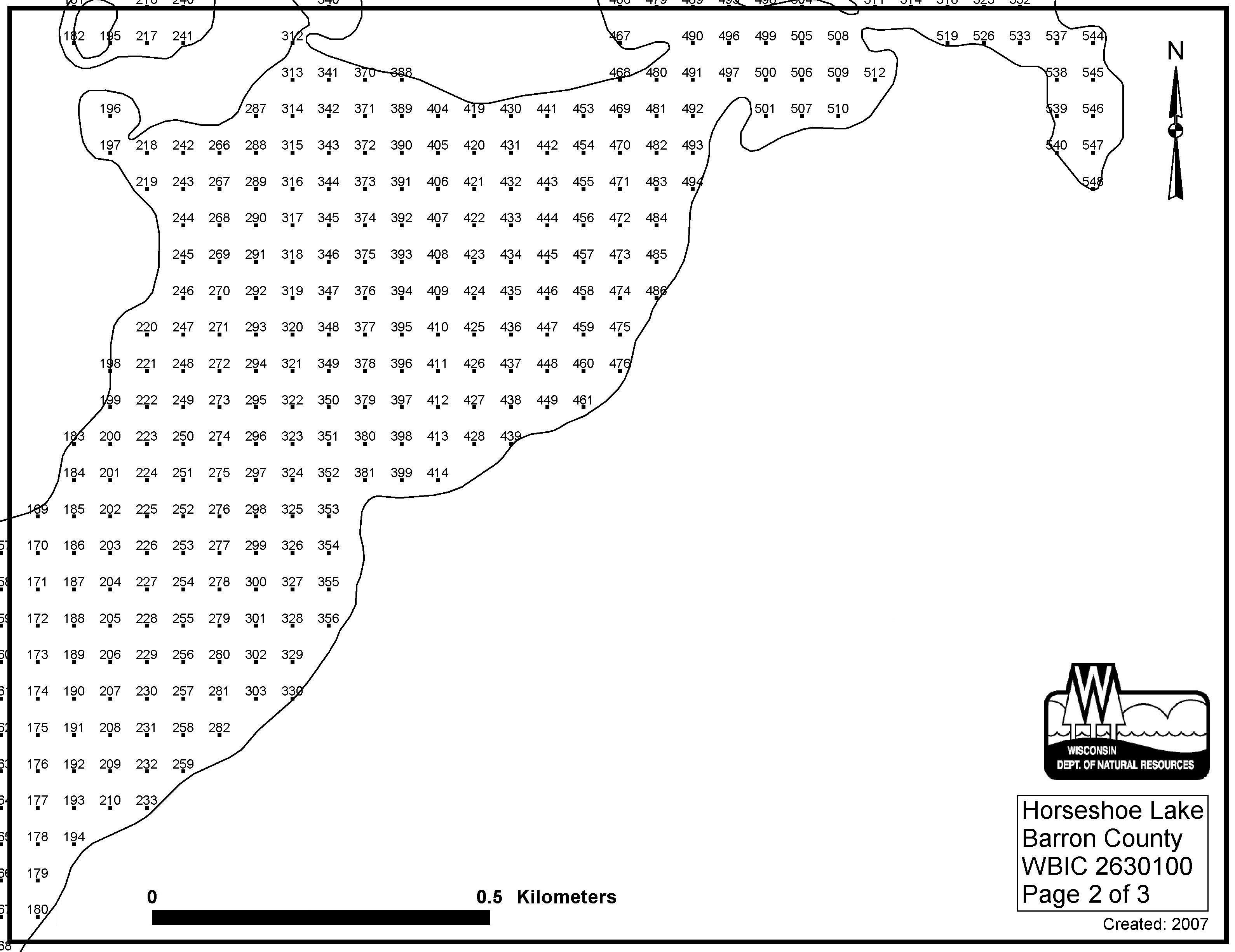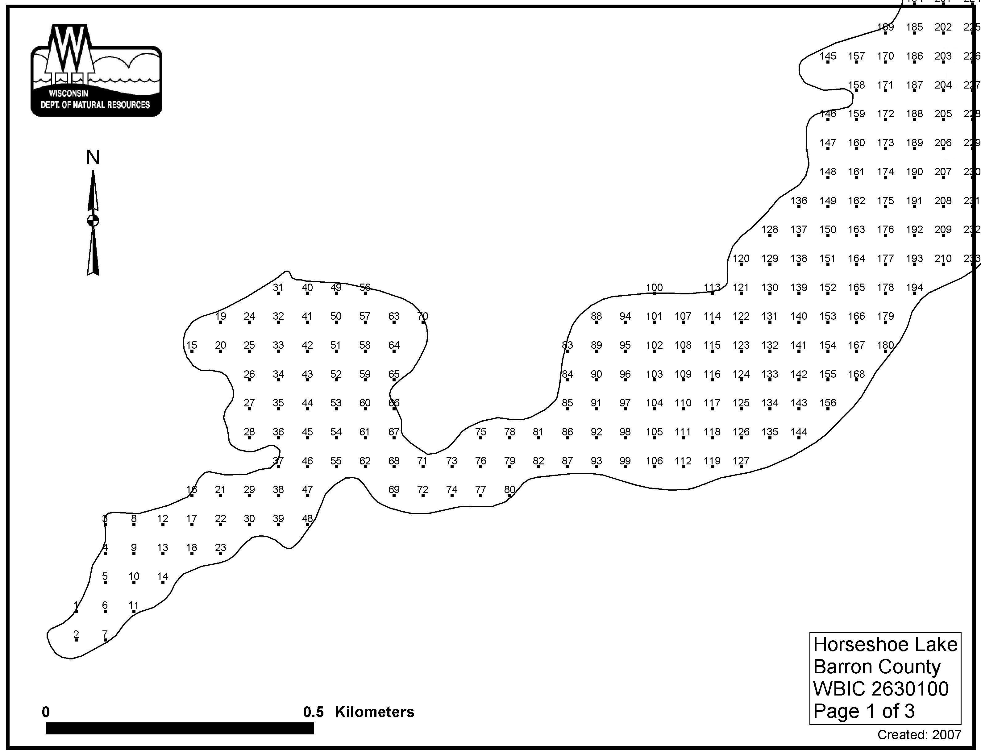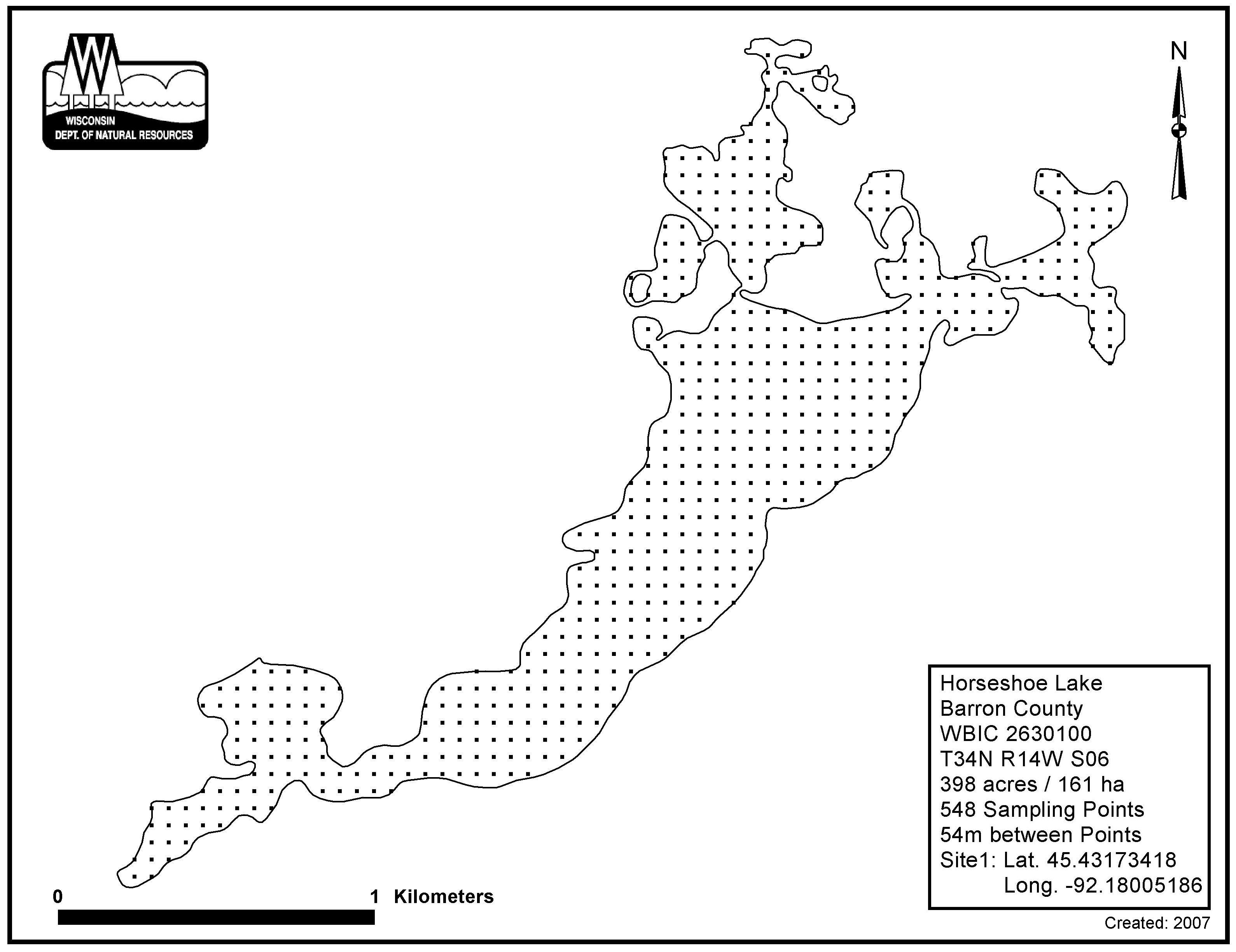 Horseshoe Lake, Barron/Polk County - Aquatic Plant Sampling Map (3)(54 mpts)