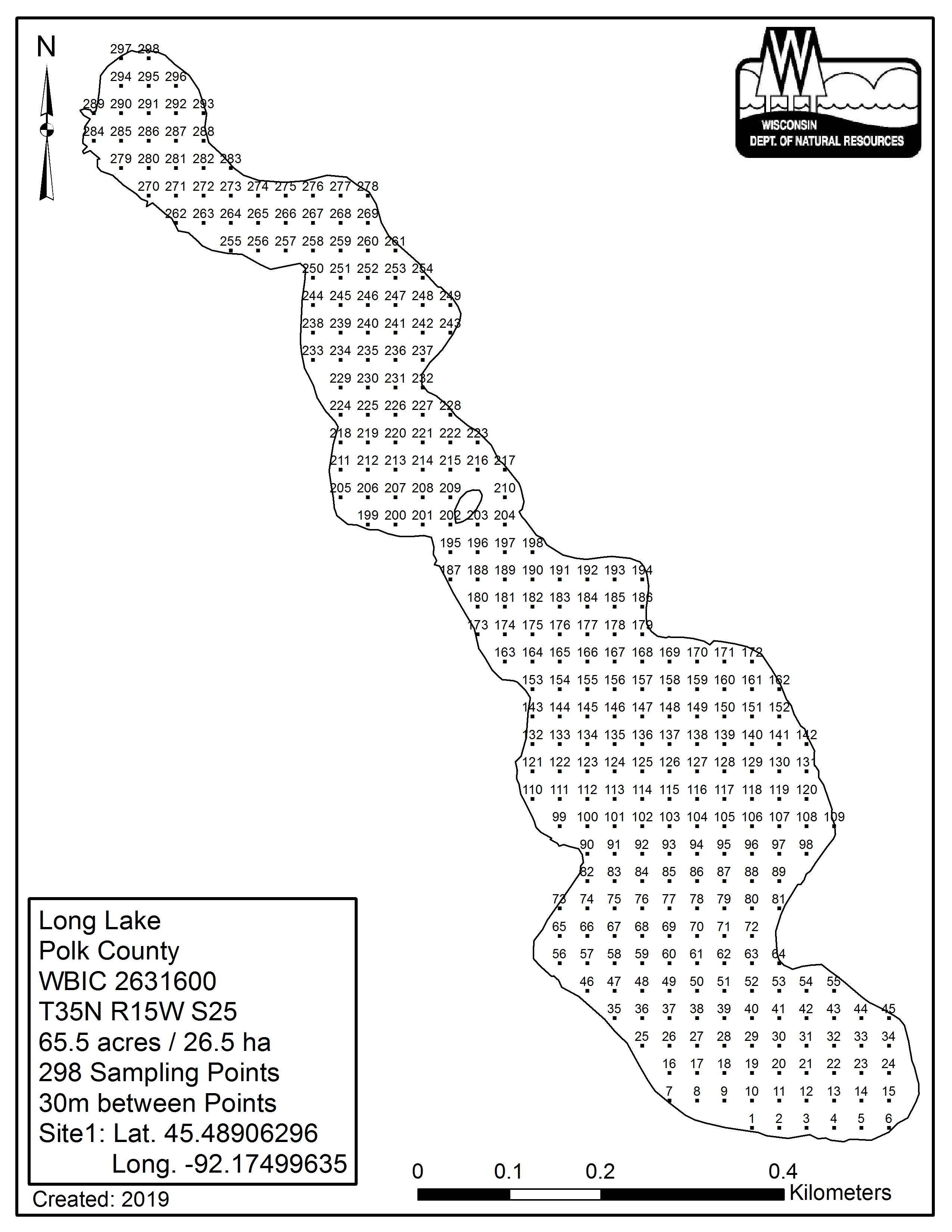 Long Lake, Polk County (2631600) - Aquatic Plant Sampling Map (30 mpts)