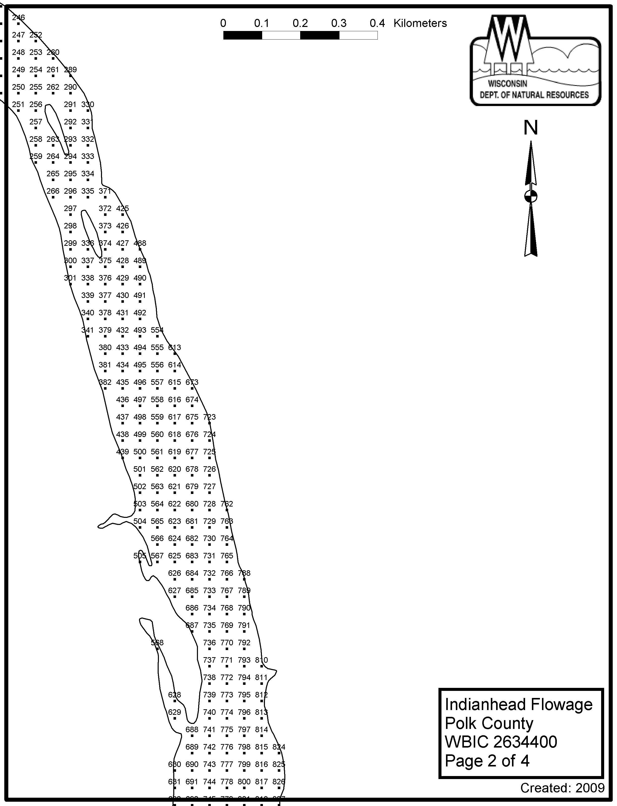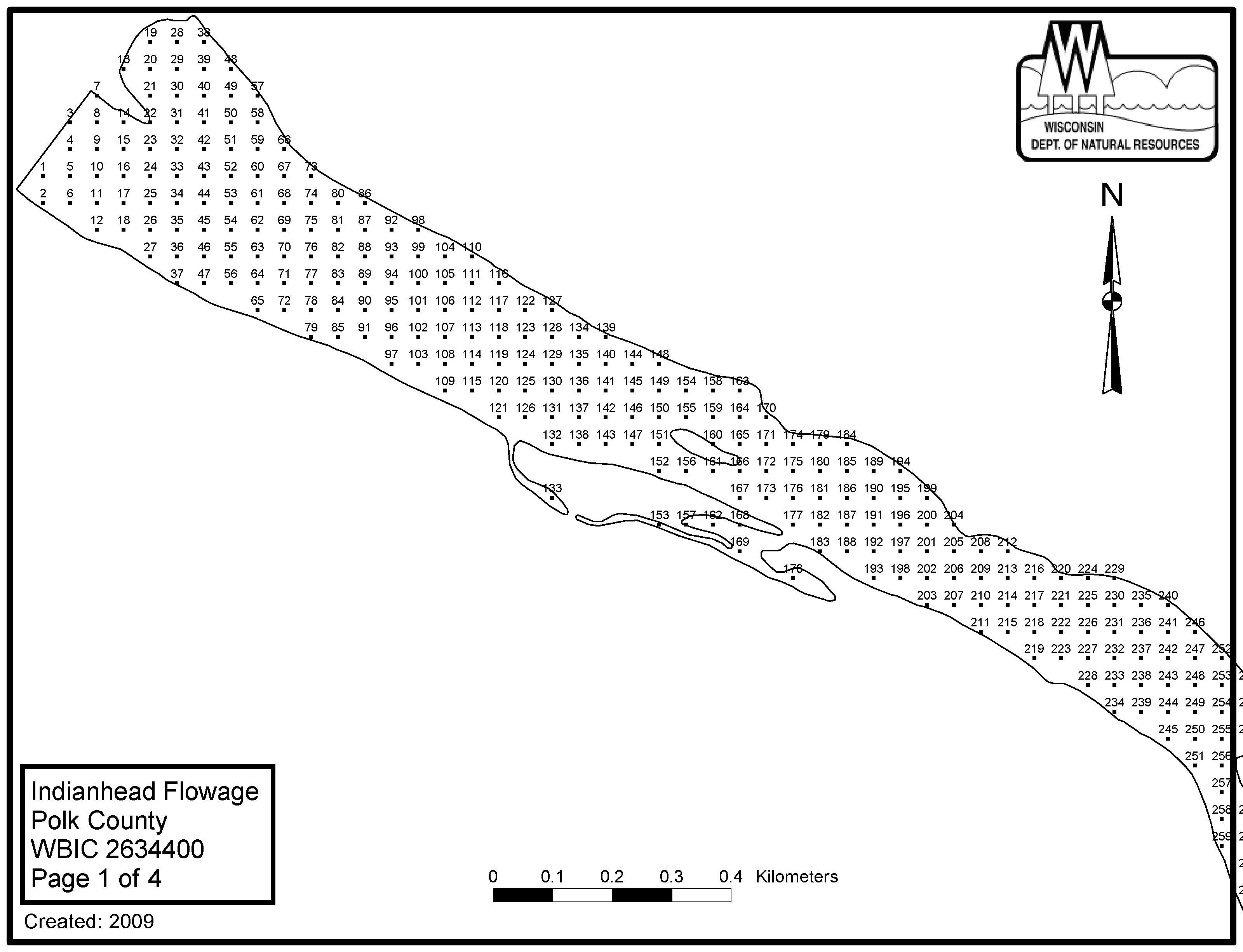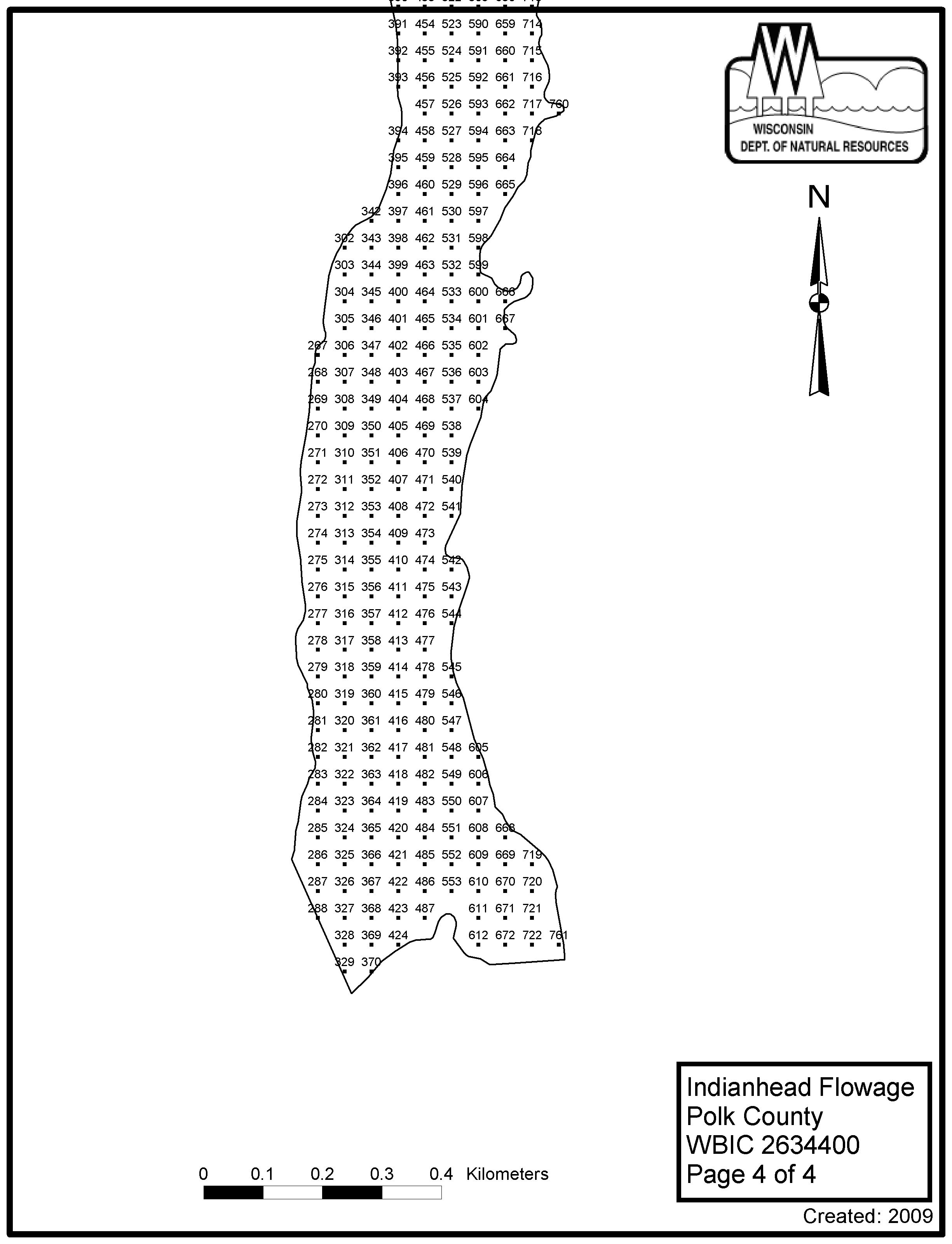 Indianhead Flowage, Polk County - Aquatic Plant Sampling Map (4)(45 mpts)