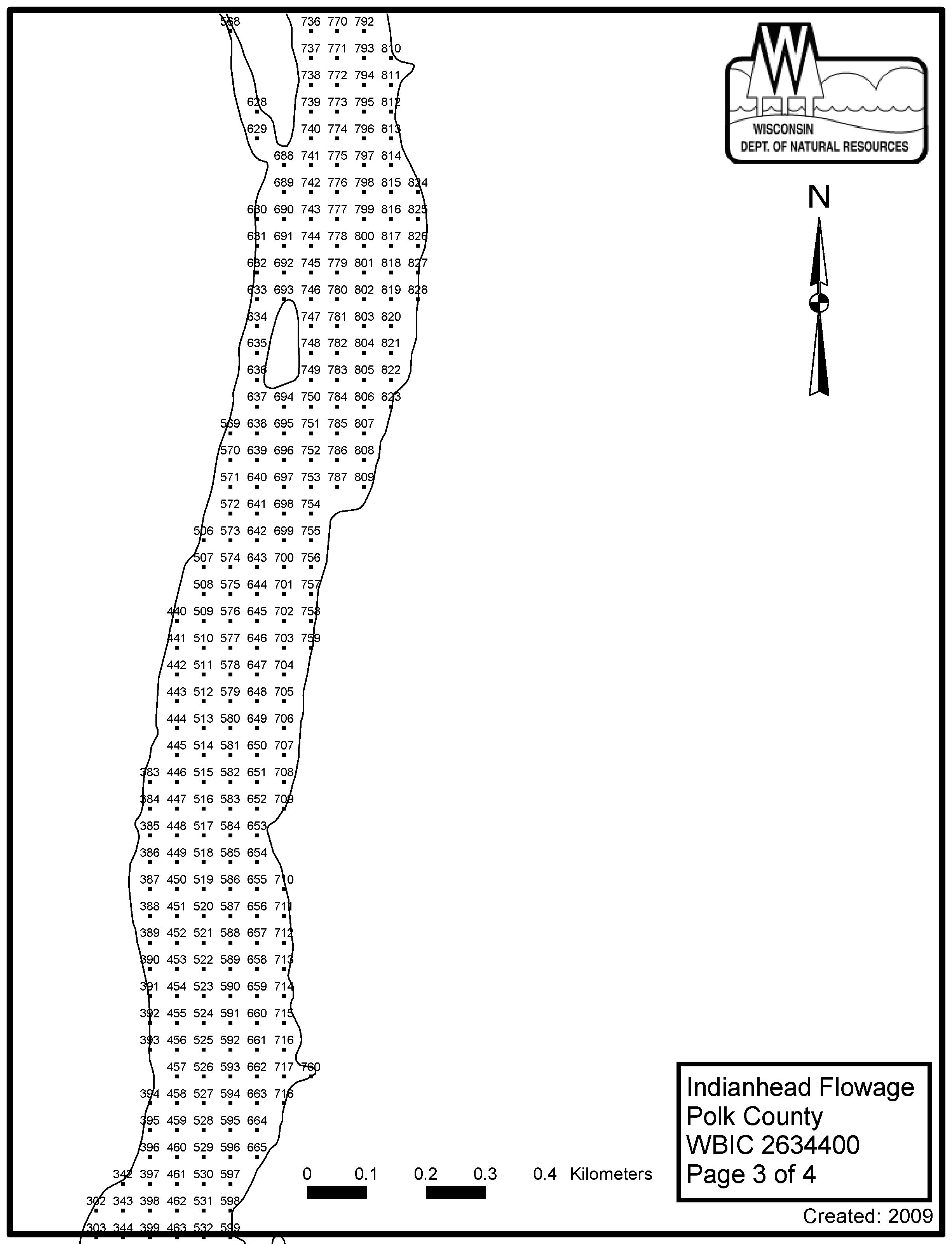 Indianhead Flowage, Polk County - Aquatic Plant Sampling Map (3)(45 mpts)