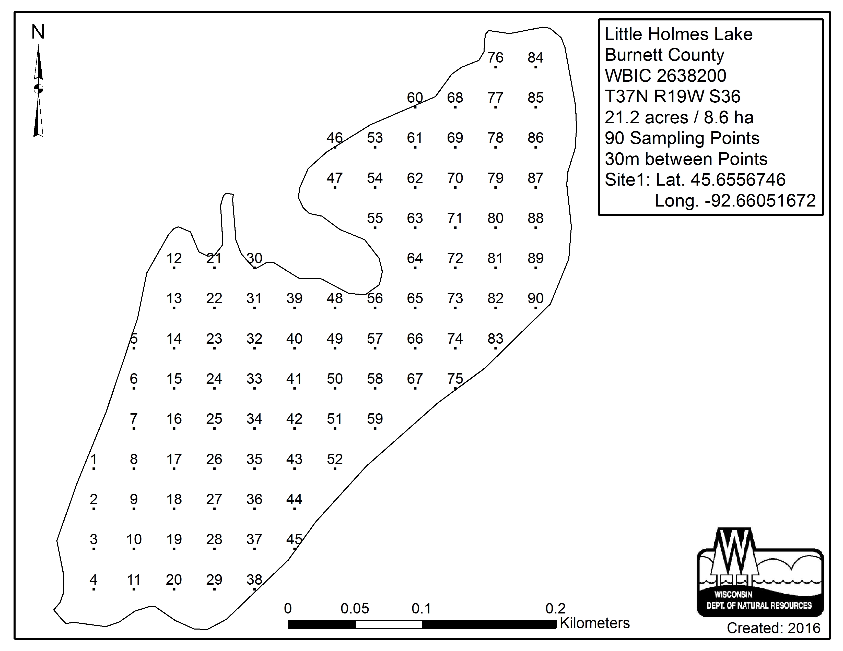 Little Holmes Lake, Burnett County - Aquatic Plant Sampling Map (30 mpts)