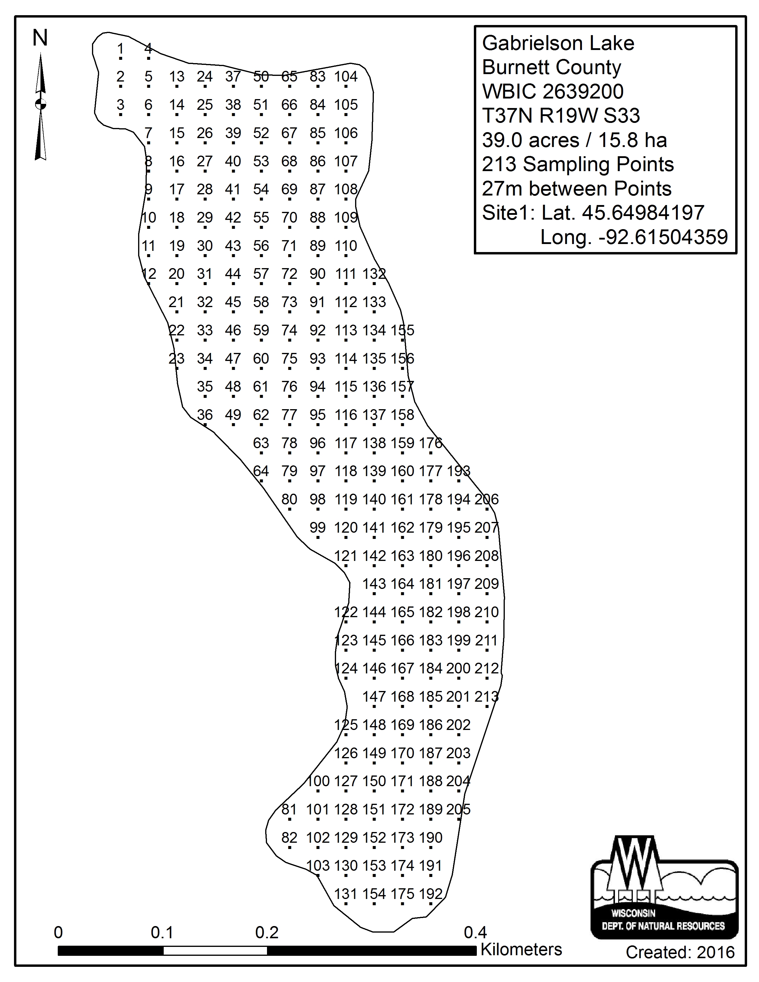 Gabrielson Lake, Burnett County - Aquatic Plant Sampling Map (27 mpts)