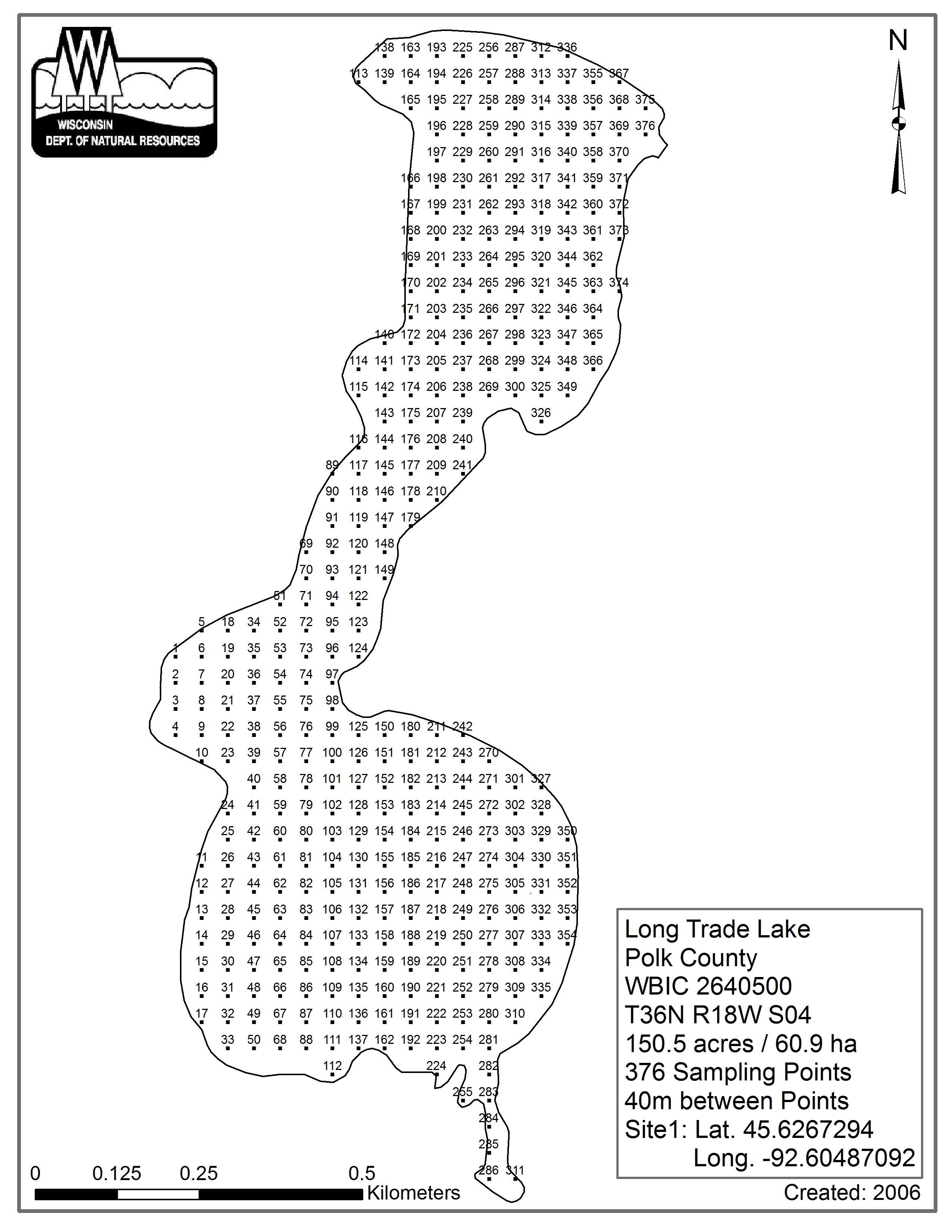 Long Trade Lake, Polk County - Aquatic Plant Sampling Map (40 mpts)