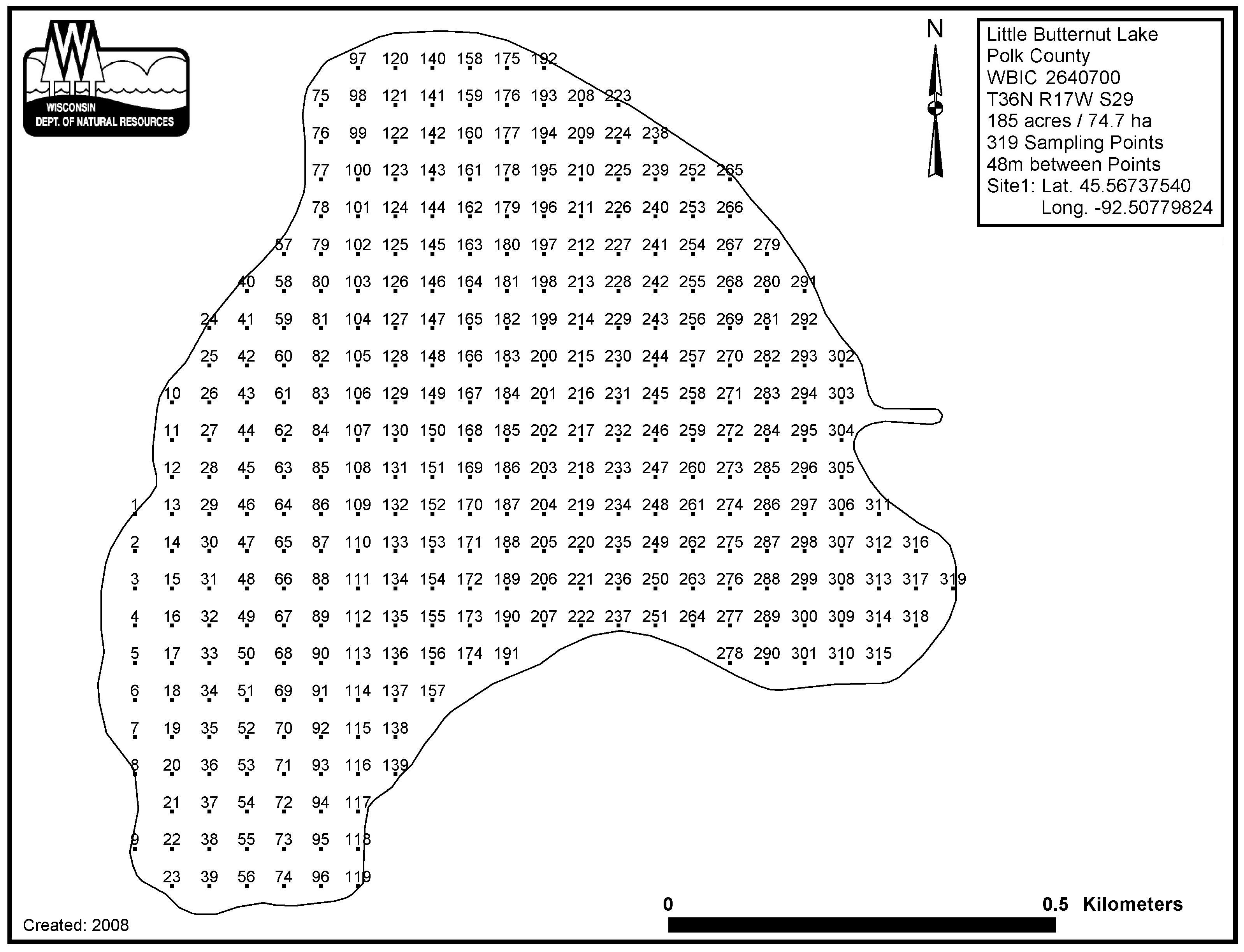 Little Butternut Lake, Polk County - Aquatic Plant Sampling Map (48 mpts)