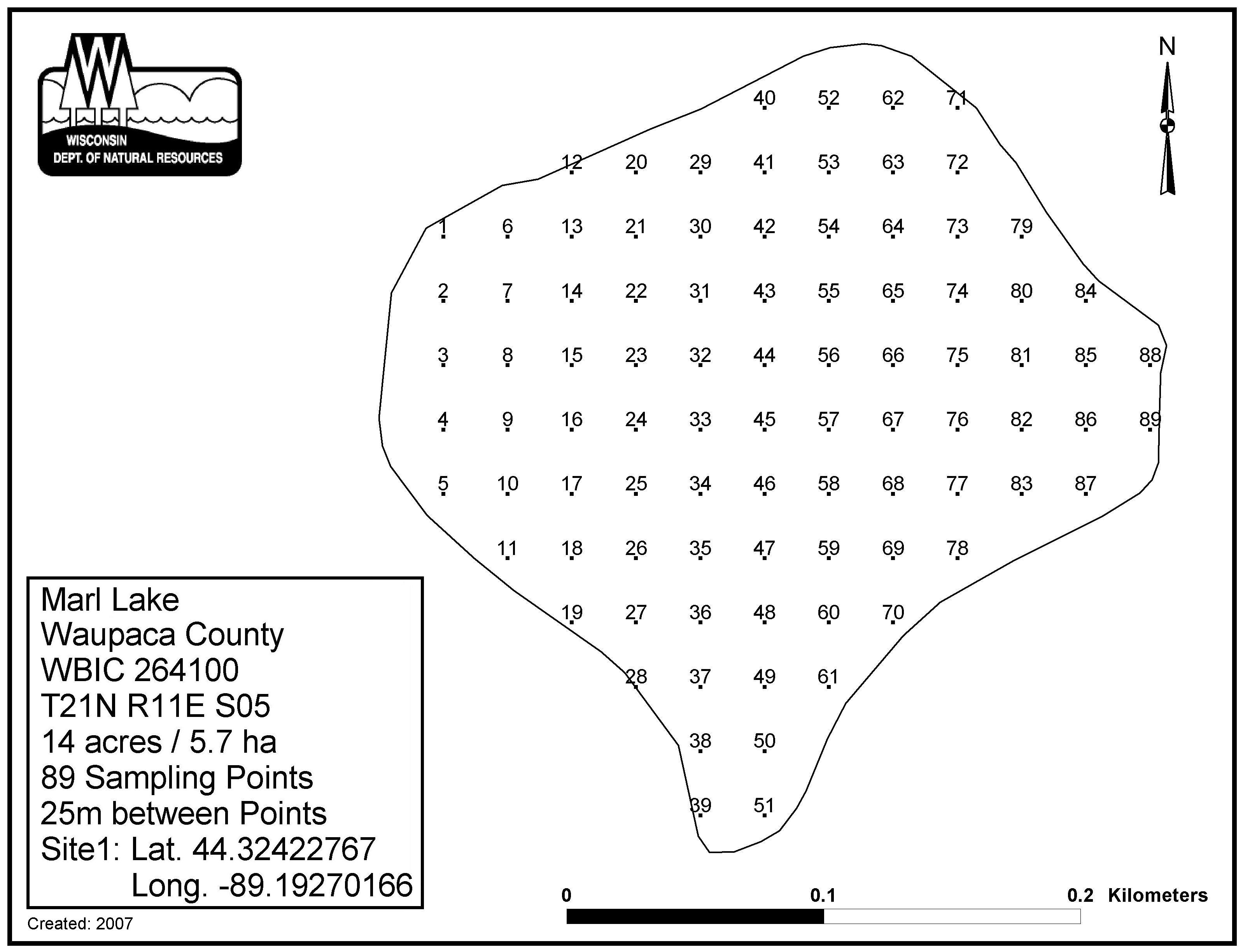 Marl Lake, Waupaca County - Aquatic Plant Sampling Map (25 mpts)