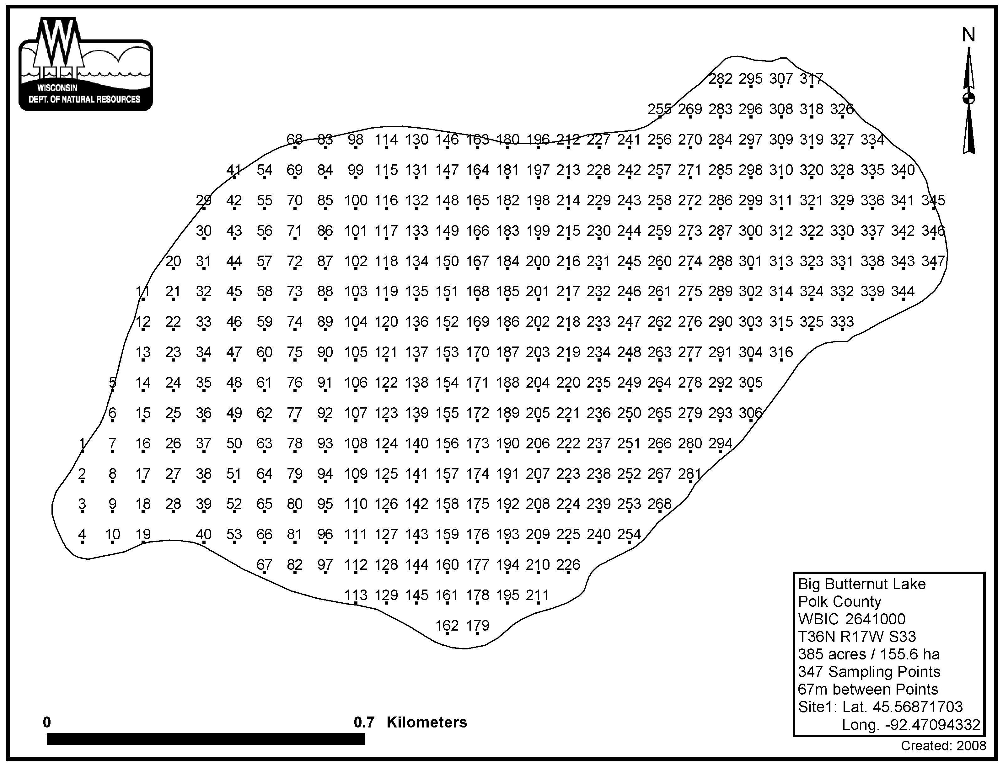 Big Butternut Lake, Polk County - Aquatic Plant Sampling Map (67 mpts)