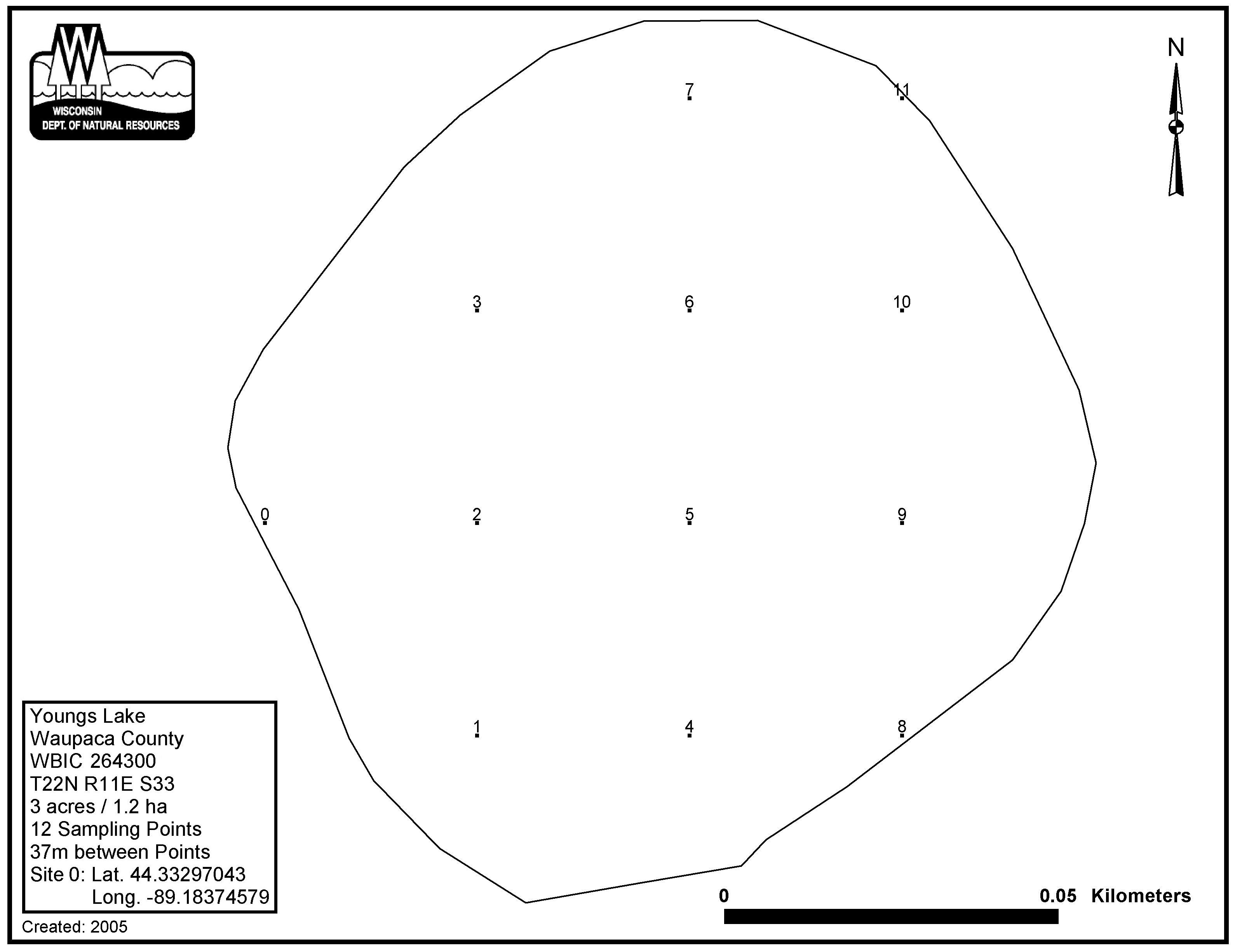 Youngs Lake, Waupaca County - Aquatic Plant Sampling Map (37 mpts)