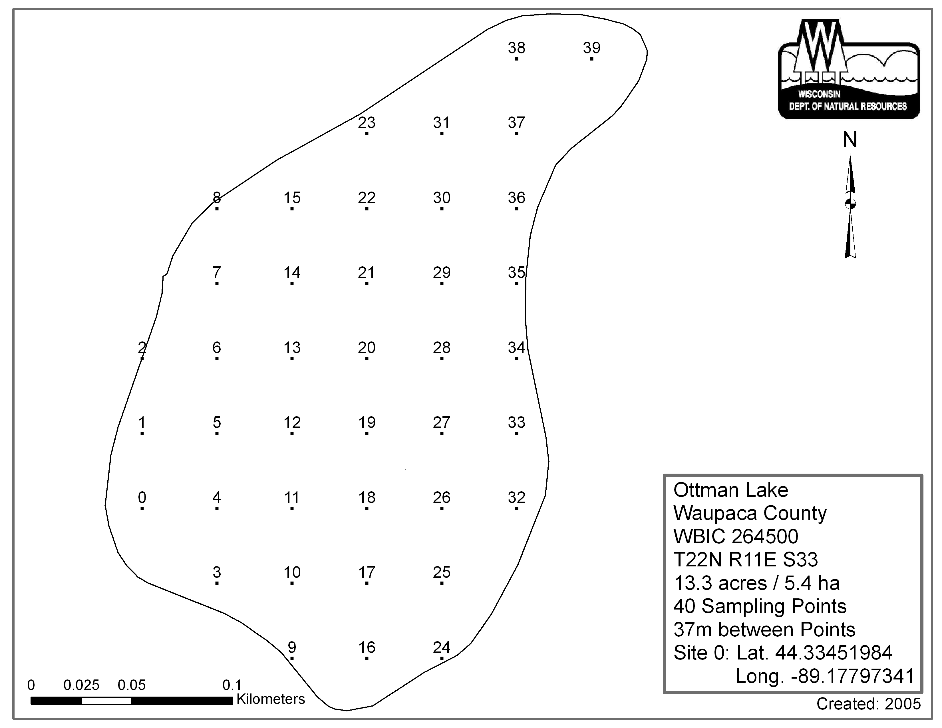 Ottman Lake, Waupaca County - Aquatic Plant Sampling Map (37 mpts)