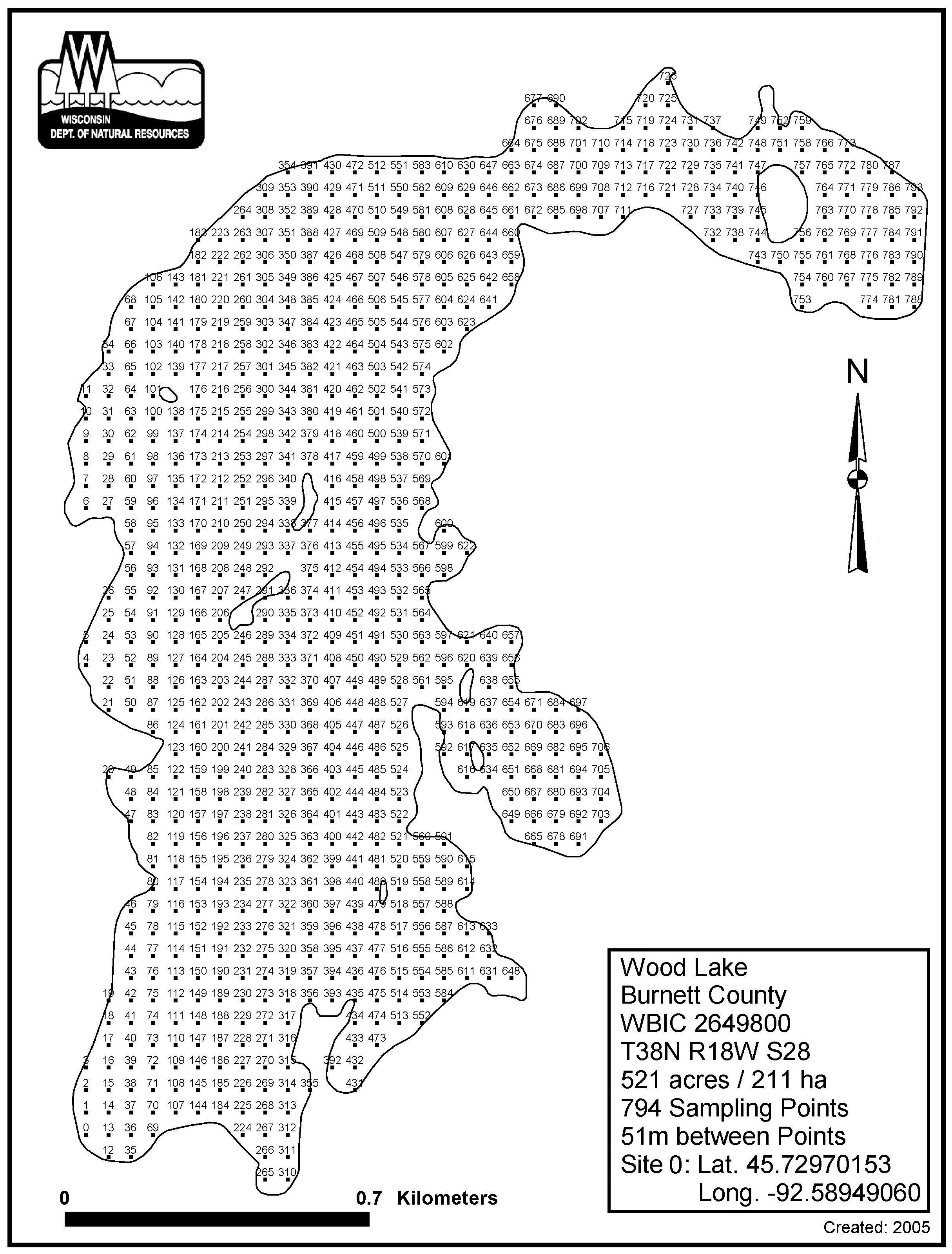 Wood Lake, Burnett County - Aquatic Plant Sampling Map (51 mpts)