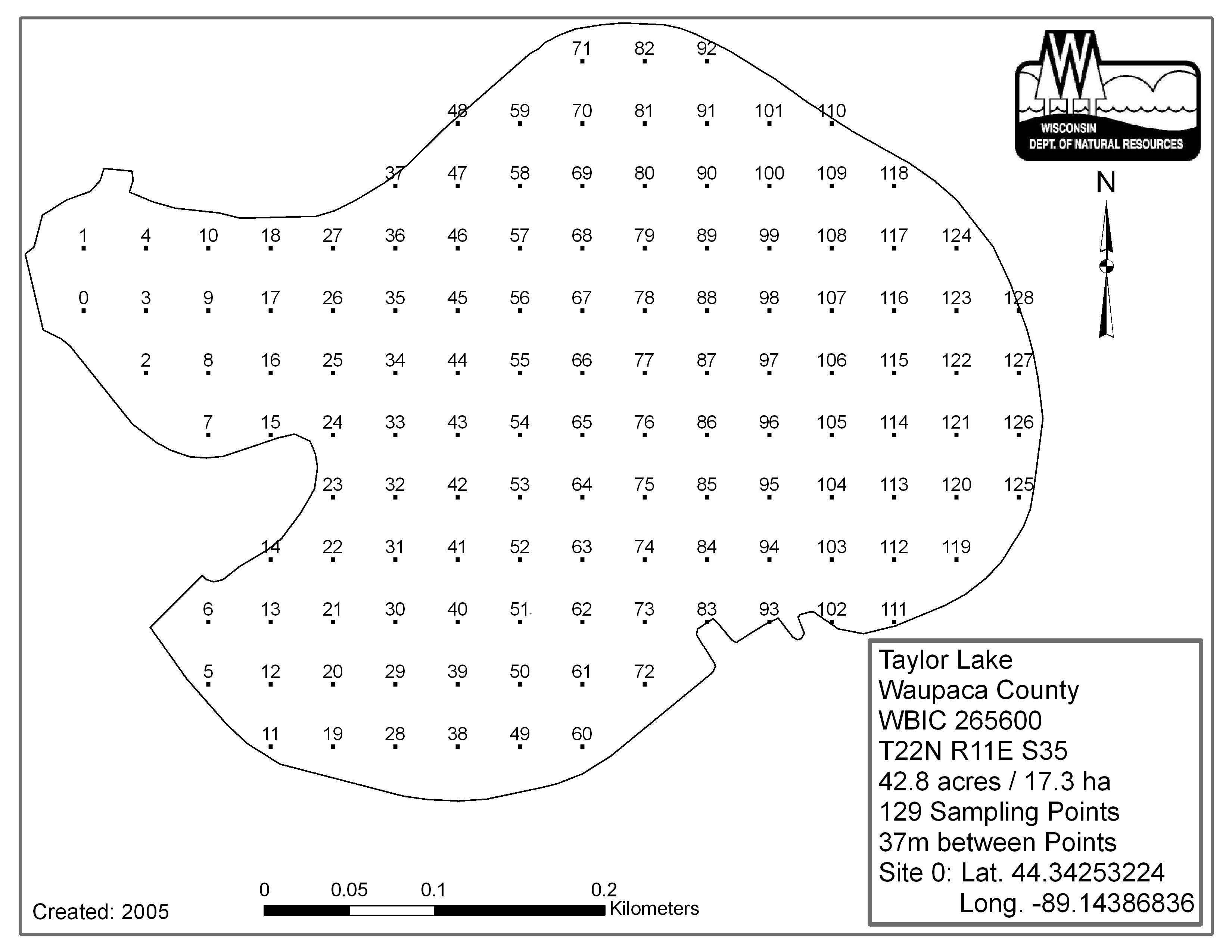 Taylor Lake, Waupaca County - Aquatic Plant Sampling Map (37 mpts)