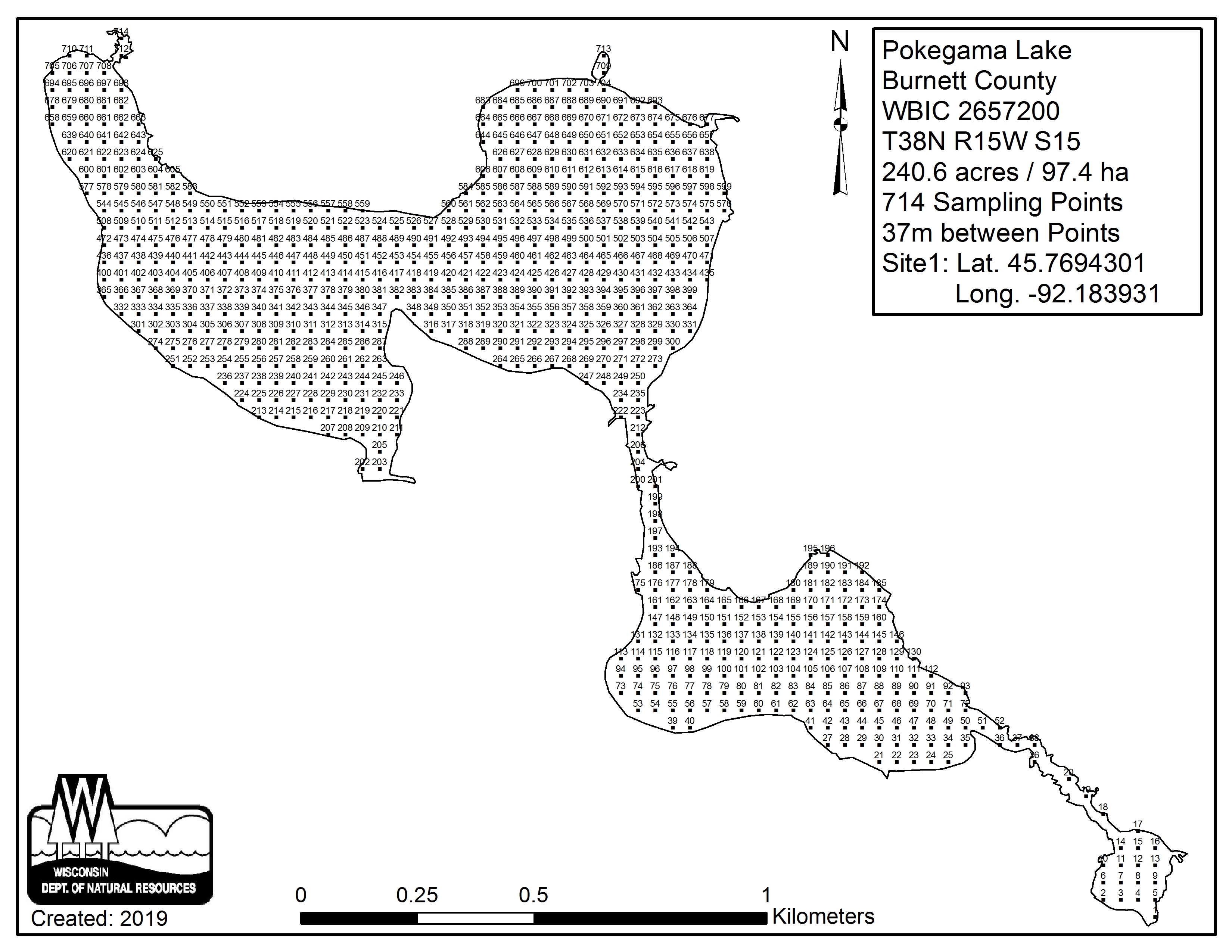 Pokegama Lake, Burnett County - Aquatic Plant Sampling Map (37 mpts)